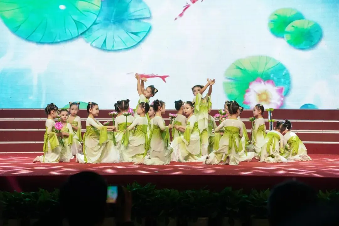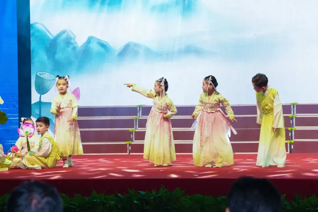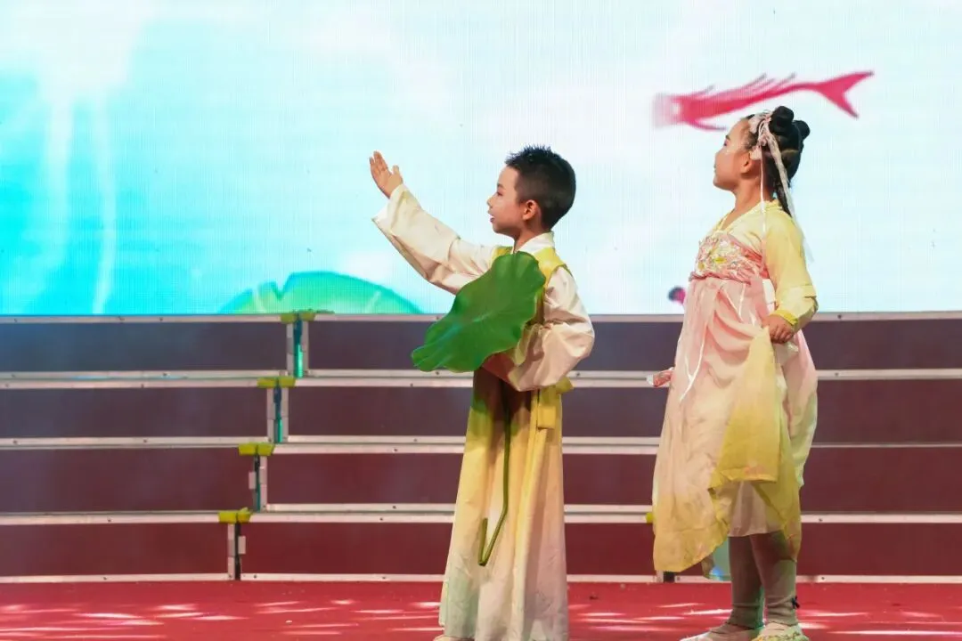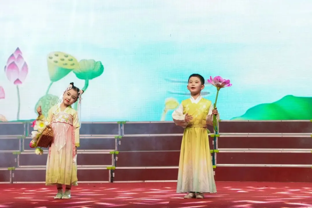 燕子矶幼儿园的小朋友们带来了歌伴舞《江南可采莲》。他们宛如花蕾,在舞台上尽情绽放,展现了传统文化在祖国幼苗心中的萌芽。
