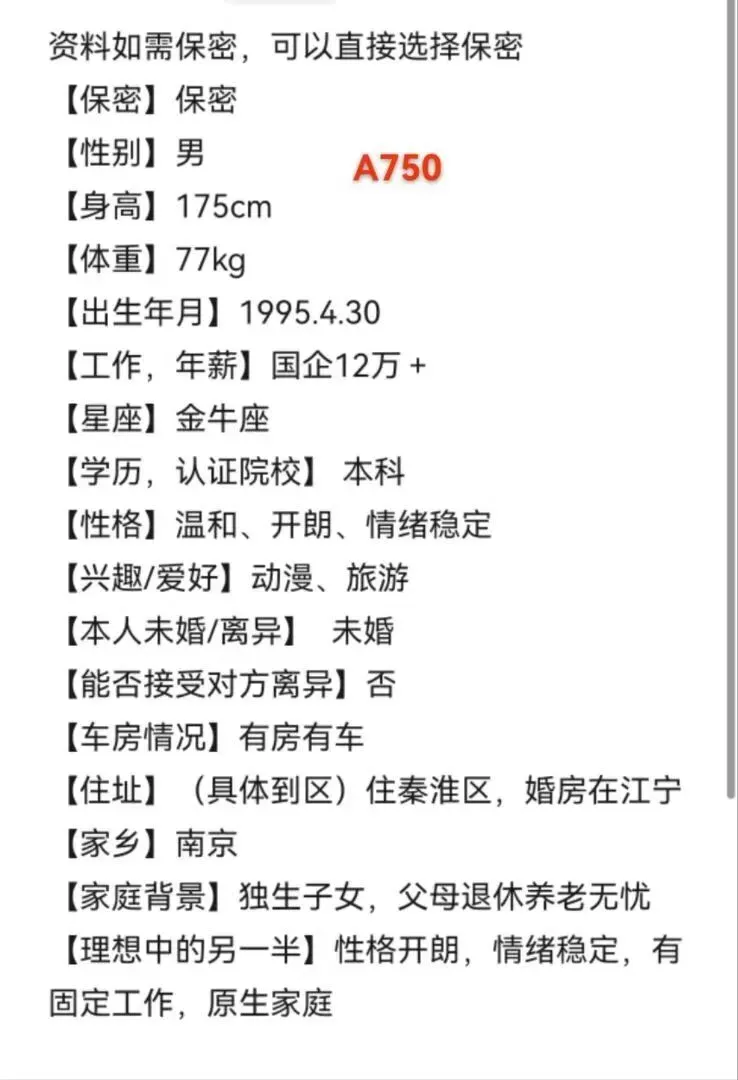 这是一个浮躁的时代,也是一个认识人成本极低的时代,无效的人和事占据太多的时间,骗子、约炮、理财销售等等让我们产生焦虑、内耗,为了帮助大家节约时间,相亲宝公众号发帖人不公布联系方式,我们红娘负责过滤一些不靠谱的人,专门进行验证,核实。提示大家:相亲急切的心情可以理解,但相亲过程中不要有任何金钱往来,切记切记。精准一对一推荐介绍,唯一线下门店地址:秦淮区大行宫长安国际2307。