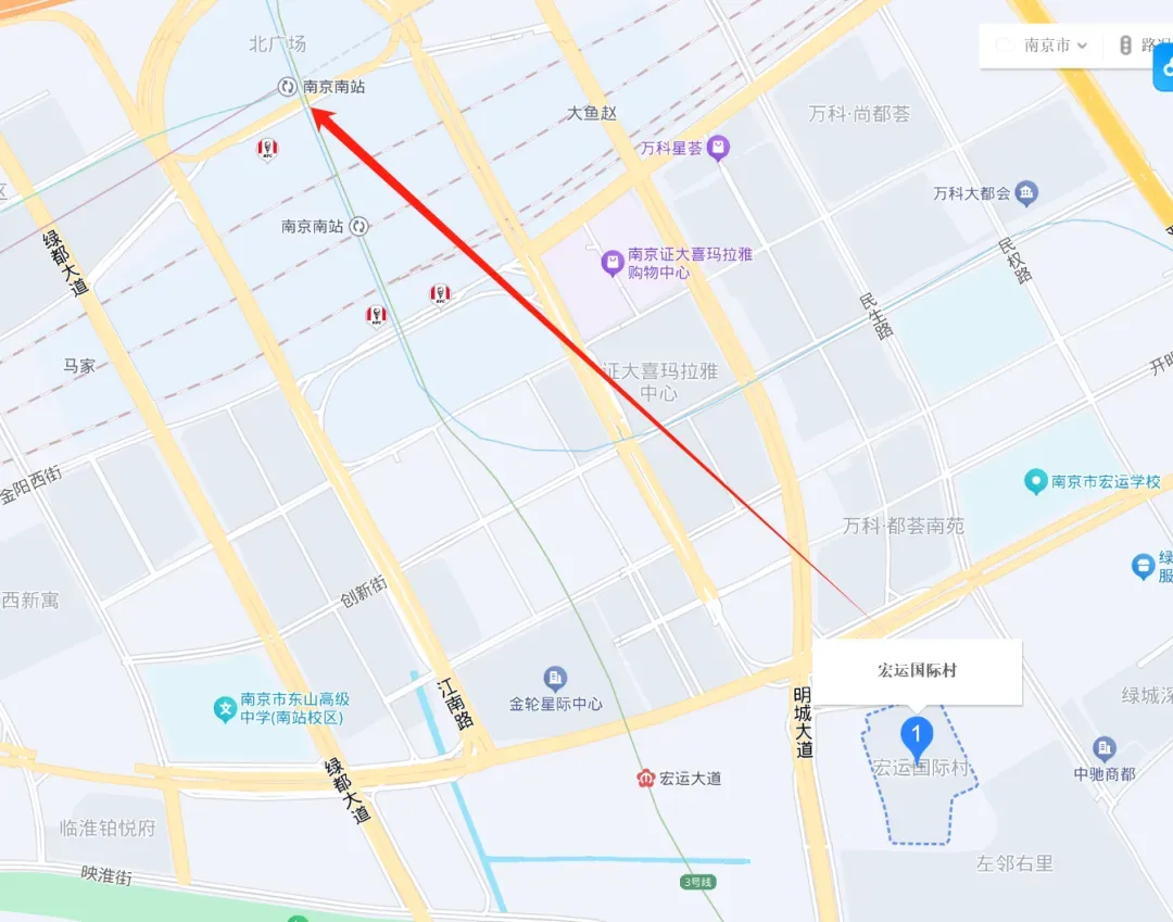 从区位上看,小区距离地铁3号线宏运大道站,仅600米,离南站也只有1.5公里的直线距离,交通非常方便。