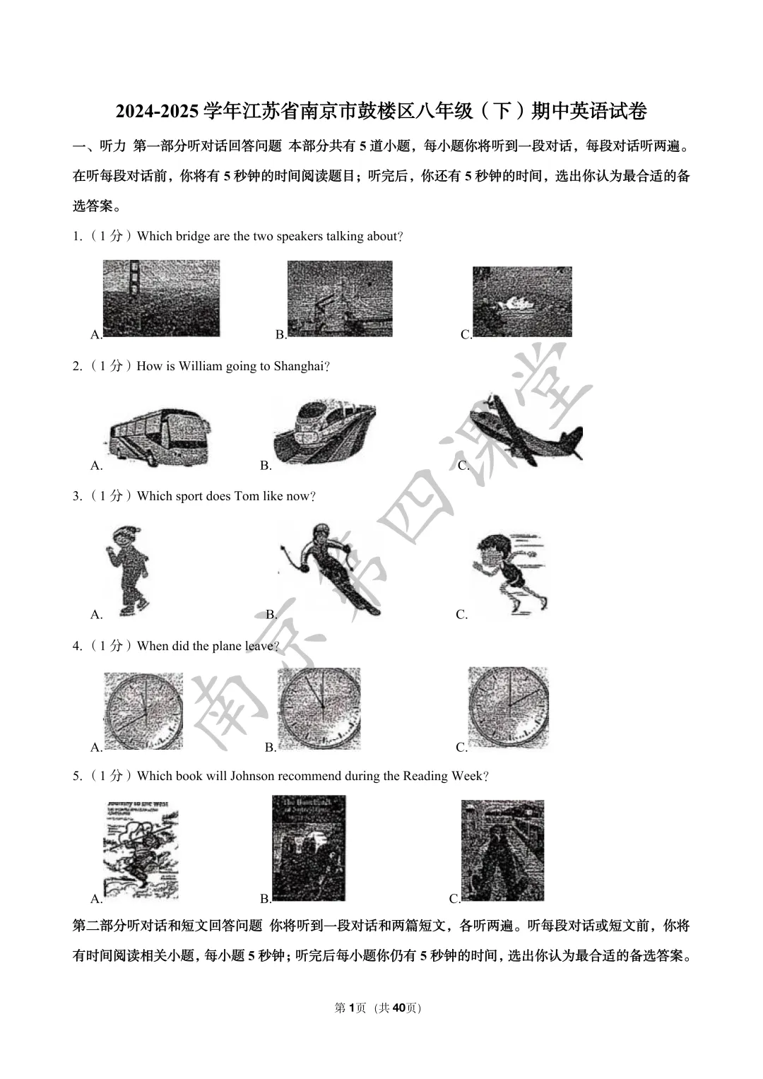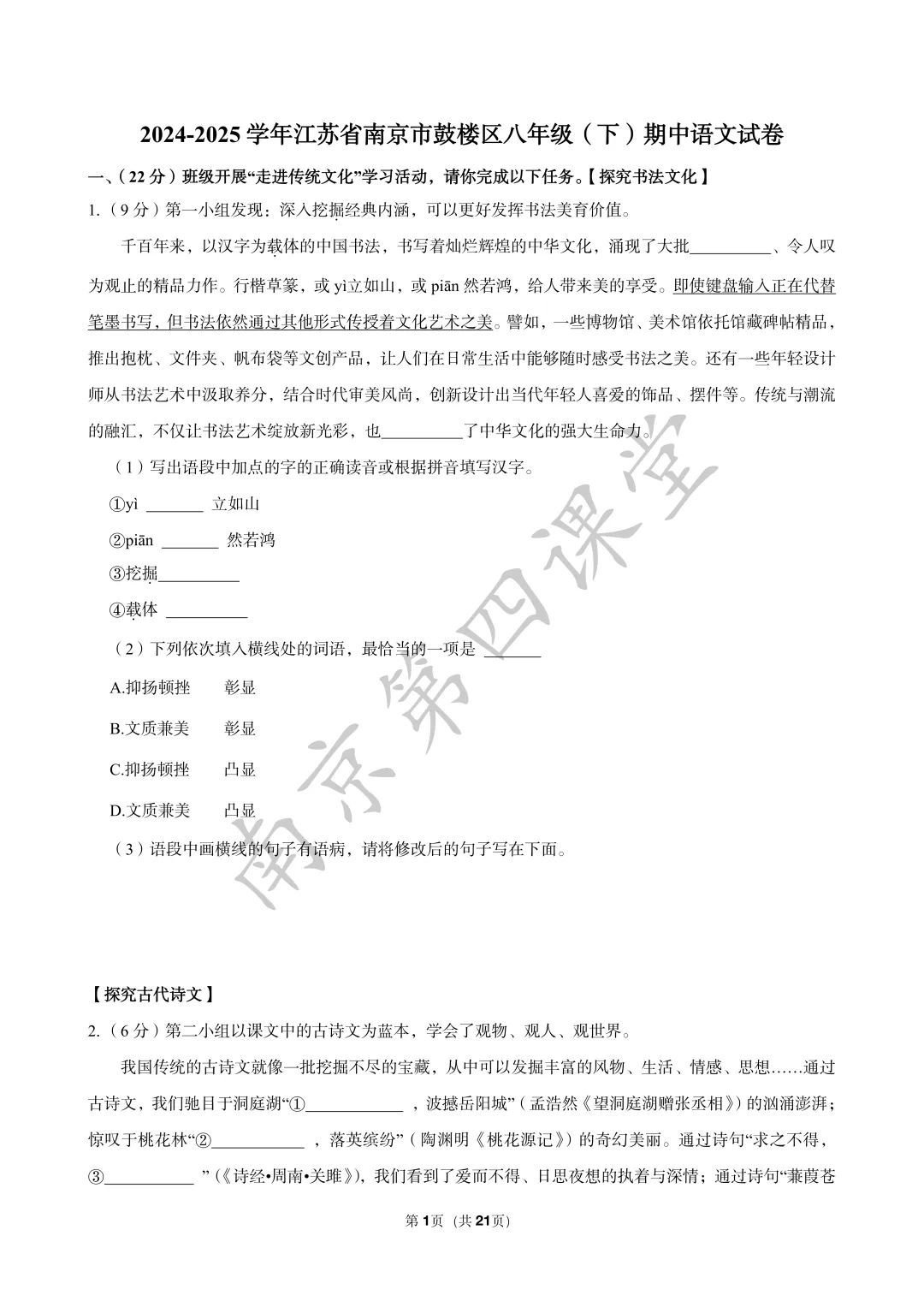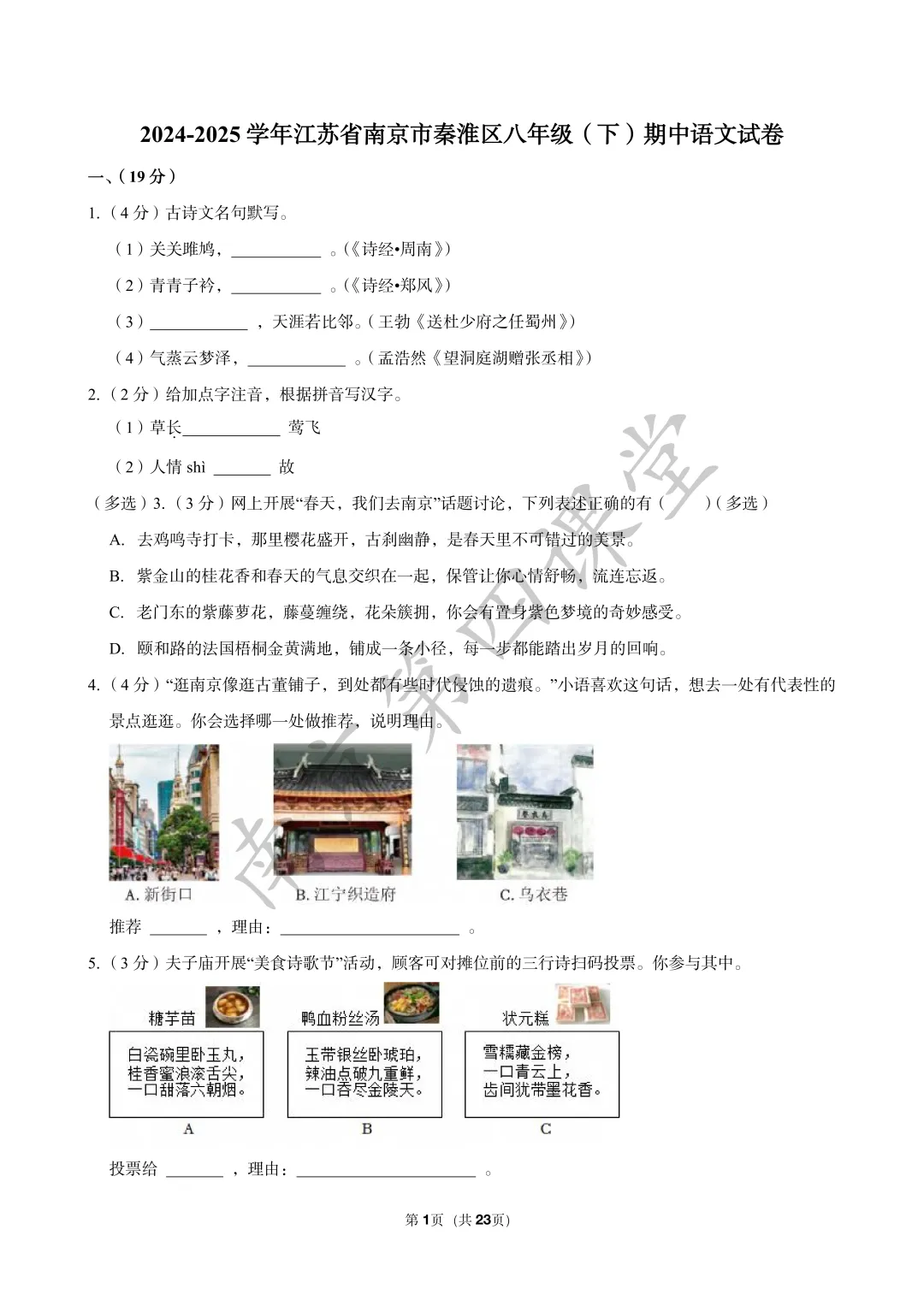 【初三南京鼓楼|玄武|建邺|秦淮|联合体】2025年一模真题卷