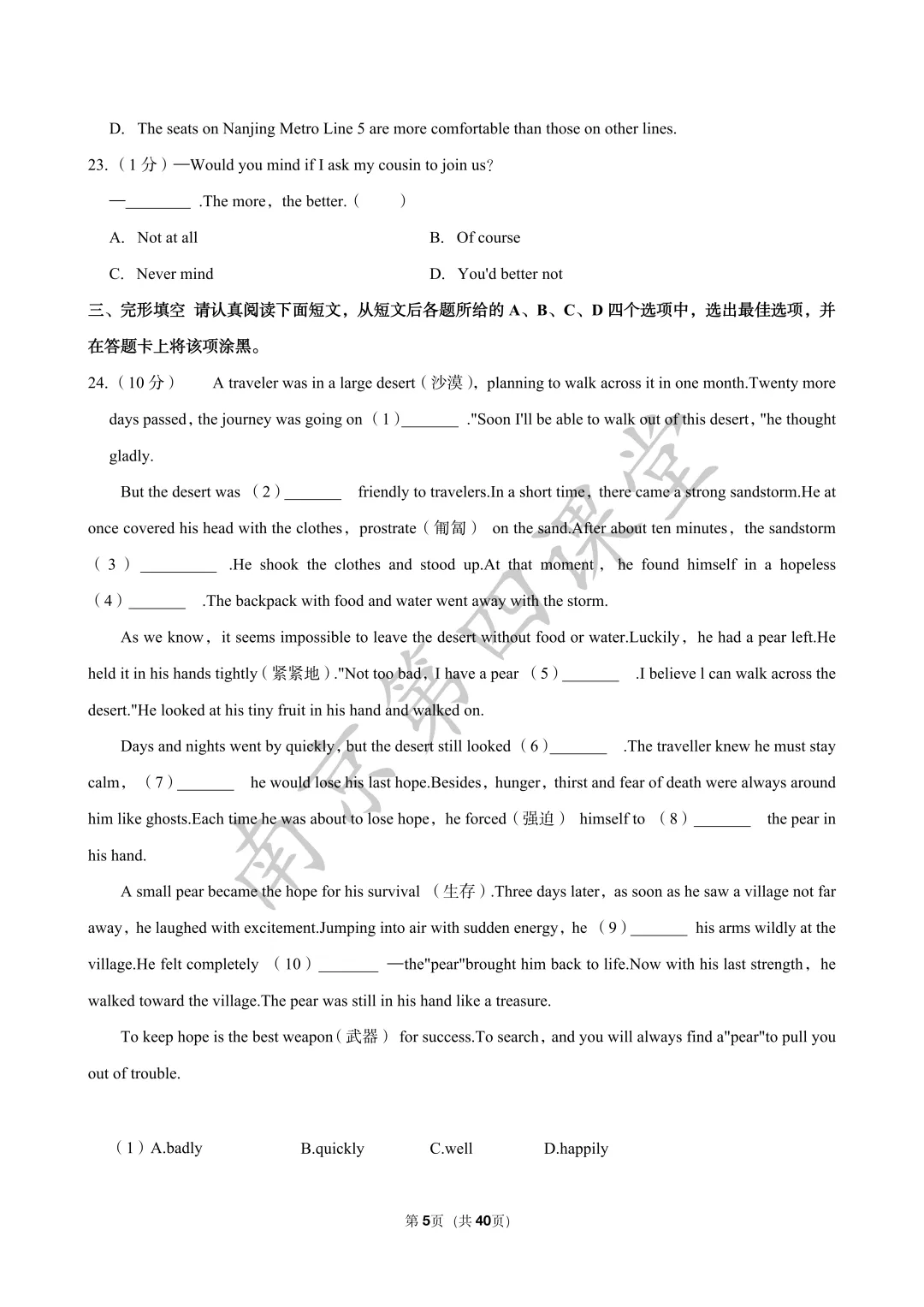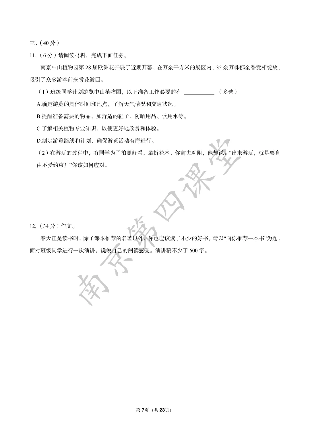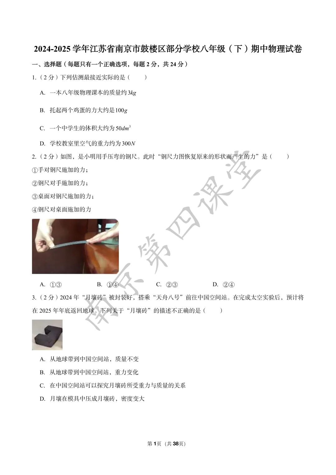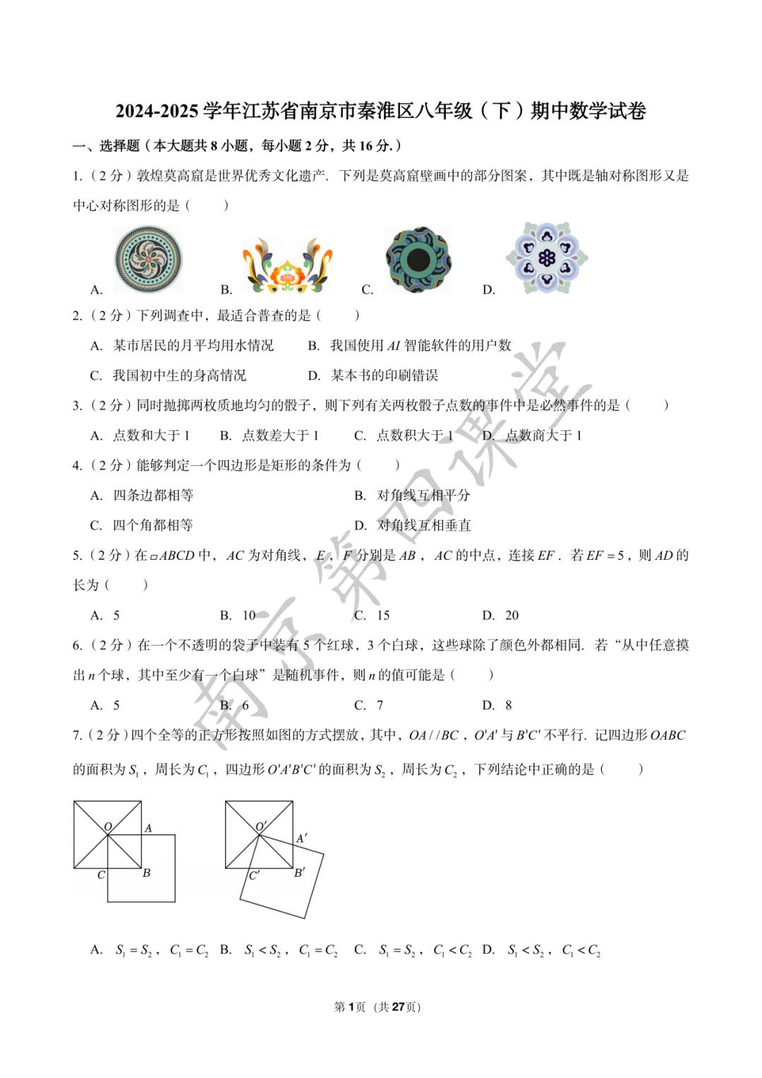 【初三南京鼓楼|玄武|建邺|秦淮|联合体】2025年一模真题卷