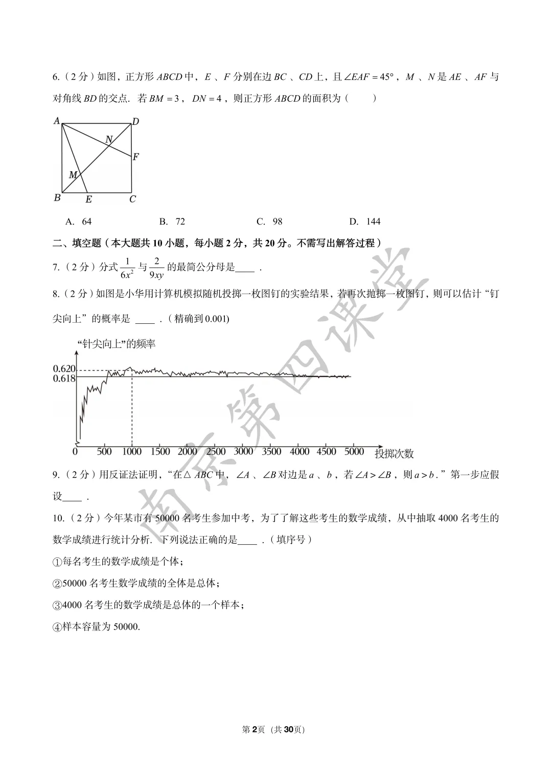 篇幅有限,其他区试卷可以后台获取
