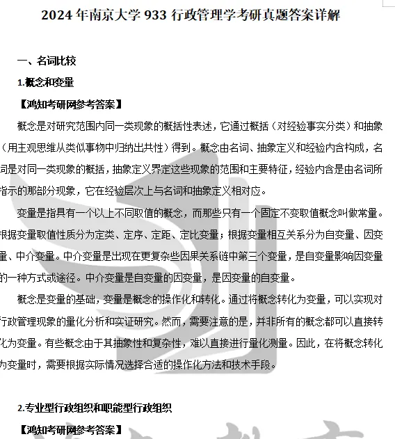 2006-2014,2024年南京大学933行政管理学考研真题参考答案【24仅名词解释部分】