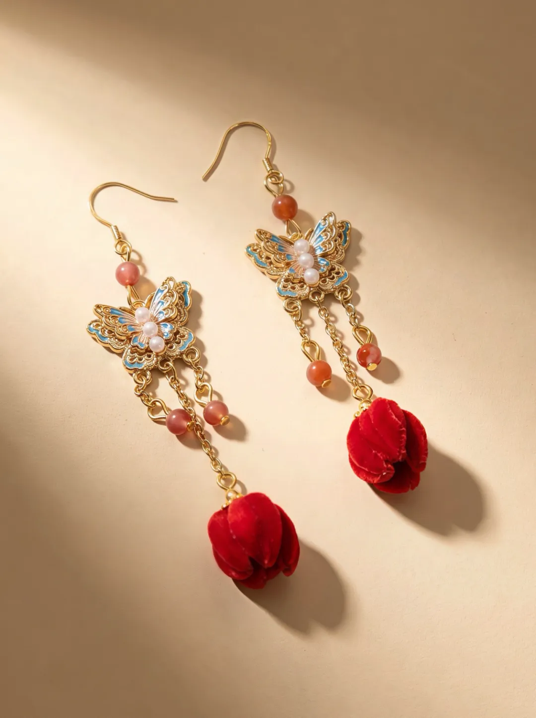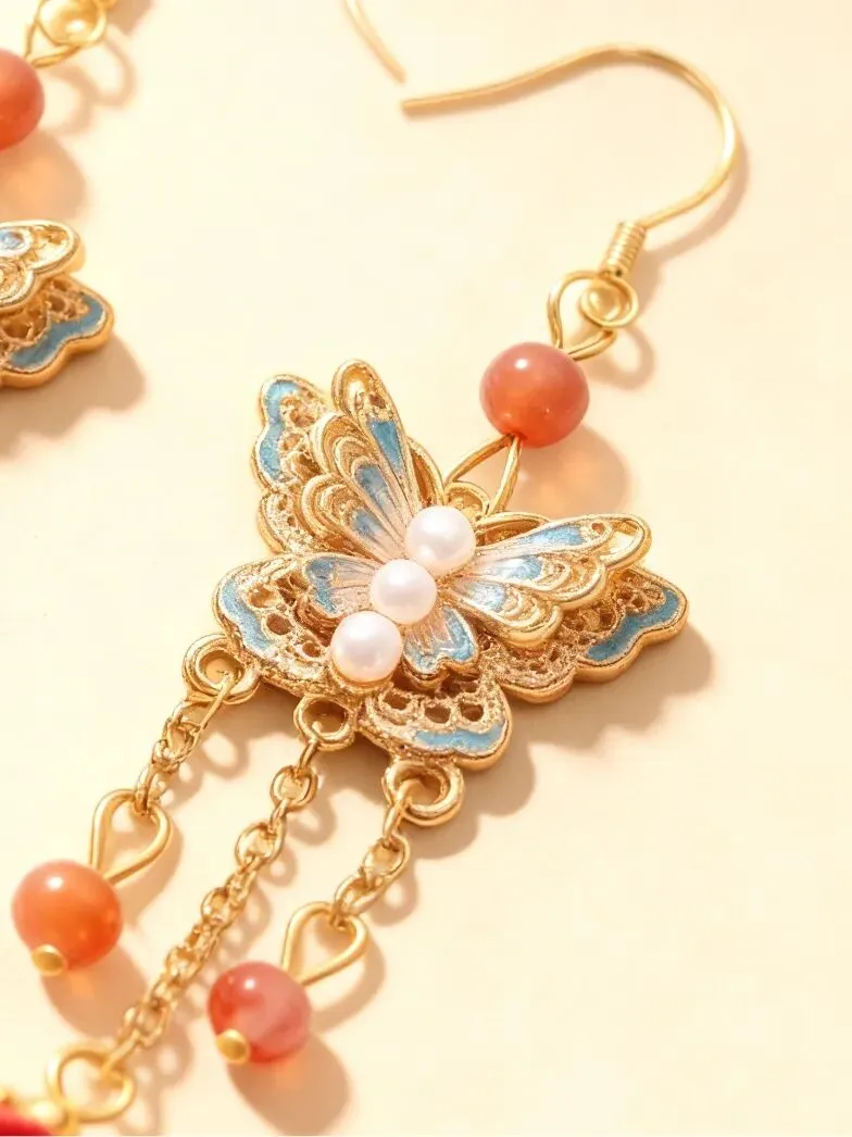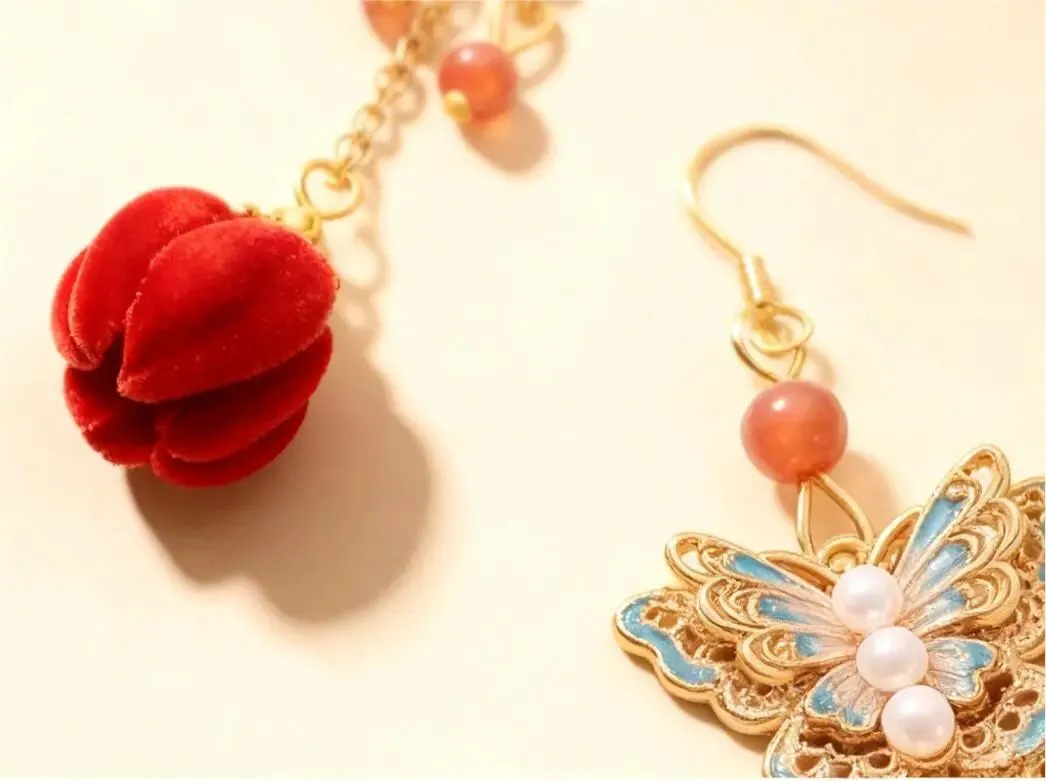 蝶舞红绒,耳间风华