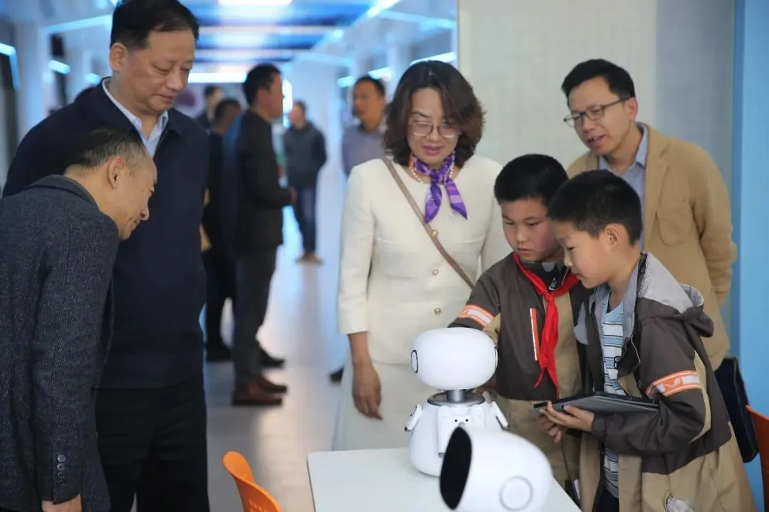 调研期间,调研组实地参观南化四小智能研修场地、怡创中心等功能场馆,观摩学生AI创意作品、科创竞赛训练、怡小豆智能体应用,详细了解学校AI教育设施、课程实施与学生培养情况。