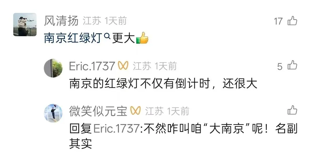 “我的大南京,人性化服务做到极致”“低调的城市,高调的路牌”“南京红绿灯更大,对近视眼太友好”