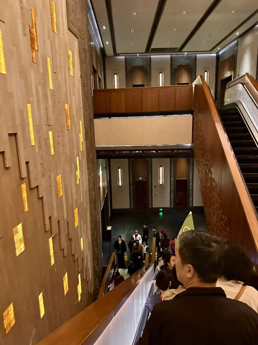 看完卧佛,出口记得拿上免费的鞋套穿上,开始前方深入地下的旅程。地下宫殿的核心是负五层的千佛殿,一座由万尊鎏金佛像环绕的艺术殿堂。