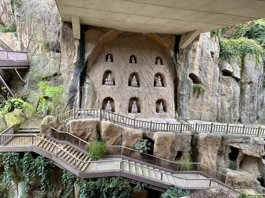 查了资料,2010年,因缘际会,牛首山开启了“补天阙”的传奇。设计师利用废弃的矿坑,向下挖掘数十米,建成了震撼世界的佛顶宫。我们下地宫的时候特地数了一下,十米差不多。