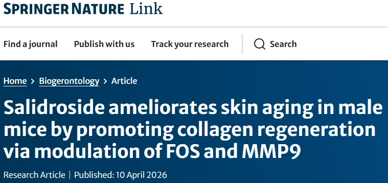 2026年4月10日,来自南京中医药大学的研究团队在 Biogerontology 杂志发表题为“Salidroside ameliorates skin aging in male mice by promoting collagen regeneration via modulation of FOS and MMP9”的论文。