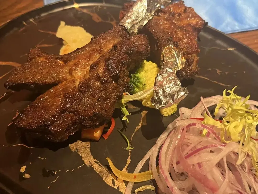 属于俺的回购菜,蘸碳烤香料大虾的蘸料吃更过瘾。吃印度菜是这样的,桌上的蘸料、汤汁都可以互相借用,就像我还在卷饼里卷鹰嘴豆沙拉。