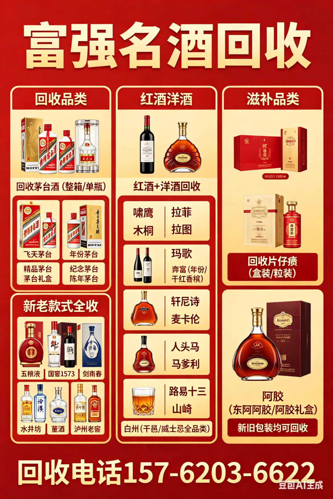 1. 飞天茅台:回收各年份、各规格飞天茅台,涵盖散瓶、原箱,无论是近年新款还是经典老款,均按实时市场行情精准估价,酒线饱满、包装完好者报价更具优势,全程透明无压价。