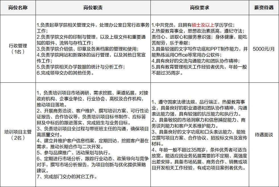 有高校行政、学生管理或教育项目协调经验者优先;