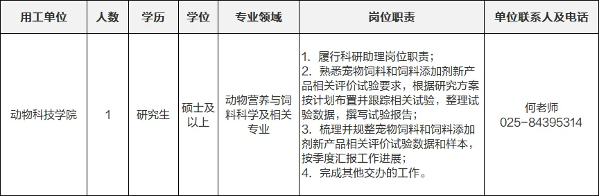 南京农业大学坐落于钟灵毓秀、虎踞龙蟠的古都南京,是一所以农业和生命科学为优势和特色,农、理、经、管、工、文、法学多学科协调发展的教育部直属全国重点大学,是国家“211工程”重点建设大学、“985优势学科创新平台”和“双一流”建设高校。经研究,现公开招聘科研助理1名。