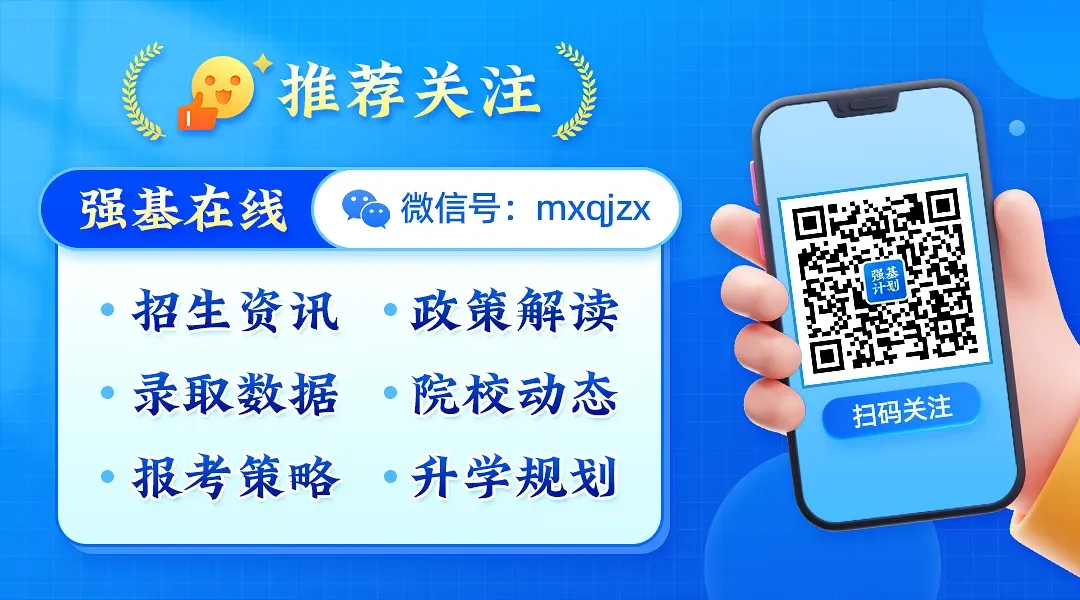 【强基在线】公众号持续为大家分享强基计划、学科竞赛、名校少年班等招生政策、招录数据、校测考核、院校动态、赛事通知、试题名单等信息,提醒各位考生关注公众号!