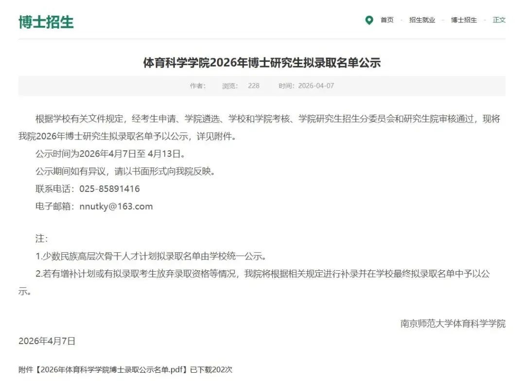 >宣布婚讯不久,她拟被录取南京师范大学博士研究生