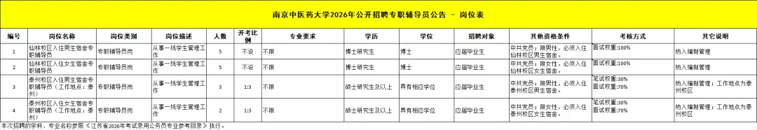 南京中医药大学2026年公开招聘专职辅导员公告-岗位表.xlsx