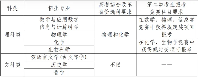 各省(区、市)符合2026年普通高等学校招生全国统一考试报名条件,具有强烈的专业兴趣,综合素质优秀,基础学科拔尖,并有志于将来从事相关领域科学技术工作的学生。申请报名考生分为以下两类: