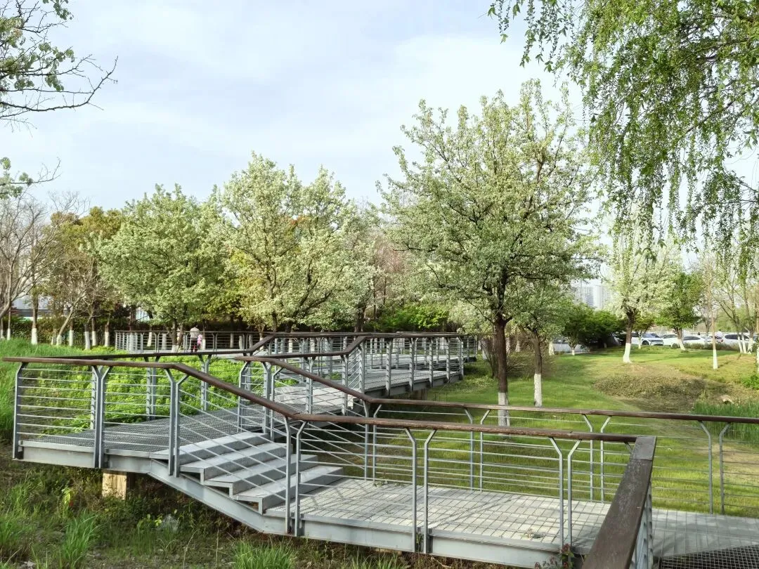 江心洲滨江风光带的这些棠梨,并非古树,而是滨江风光带建设时特意保留并加以补充的原生树木。在江心洲生态科技岛的开发过程中,秉持“生态优先”原则,对岛上的原生植被进行了系统性梳理。建设时不仅完整保留,还补植了新的棠梨植株,形成了如今“银树百花”的景观节点。