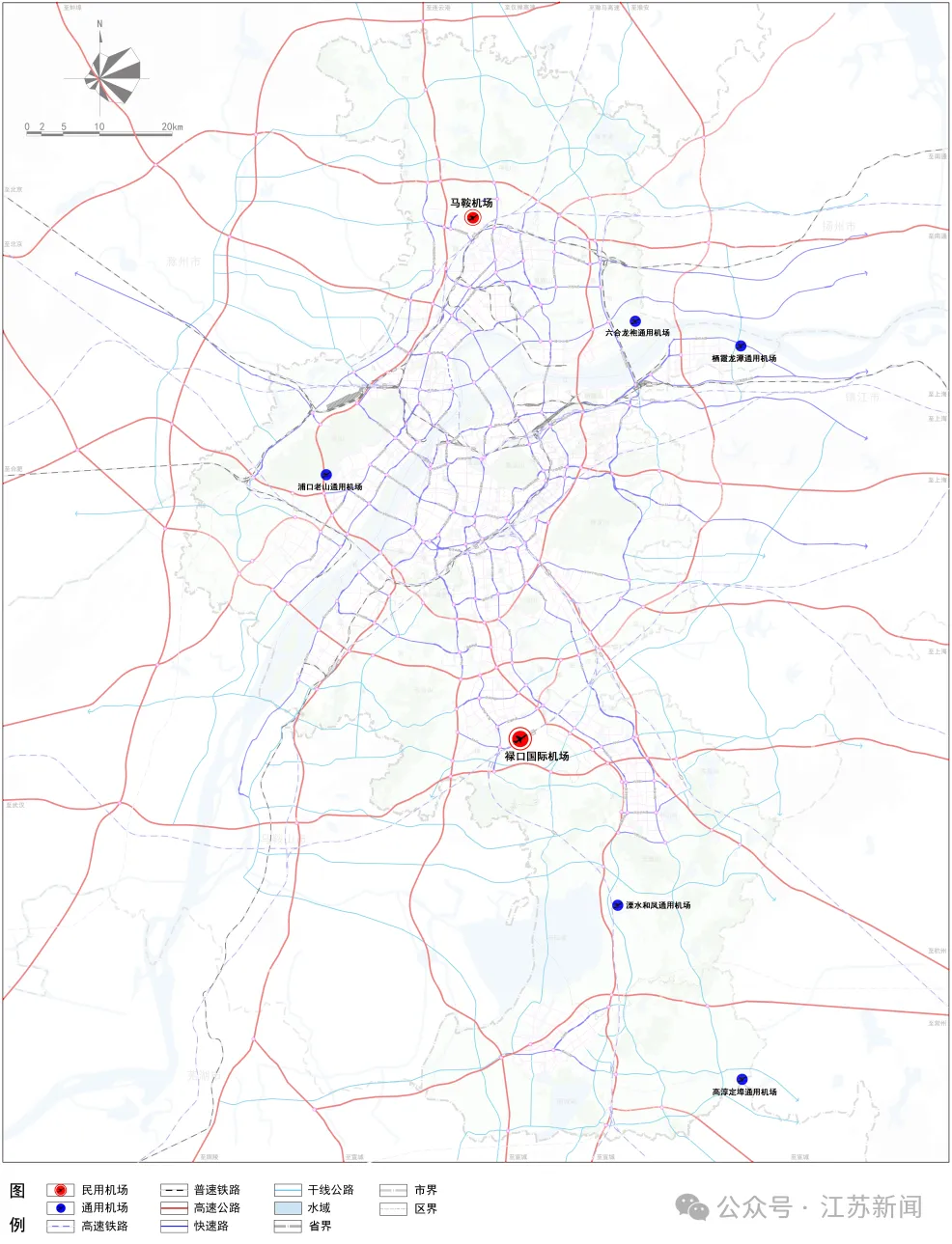 规划构建“一主一辅、五个通用机场”格局,重点提升禄口国际机场的综合交通换乘能力,完善马鞍机场配套功能;同时布局高淳定埠、溧水和凤、栖霞龙潭、浦口老山、六合龙袍5座通用机场。
