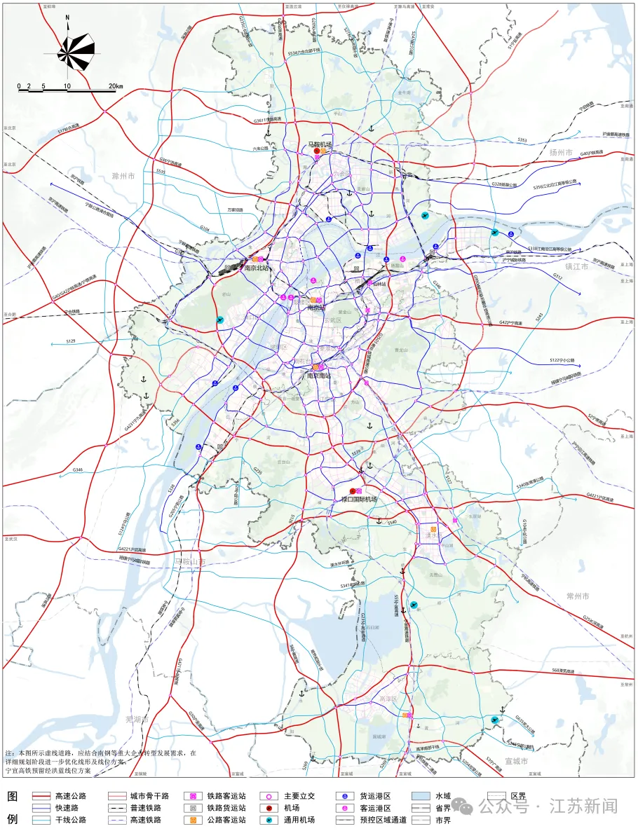 规划形成“两环十八线”的铁路主骨架、“3主站(南京北站、南京南站、南京站)+7辅站”的客运站体系。引入沪渝蓉高铁、宁淮城际这些重要交通线路,实现2小时通达长三角主要城市、3小时就能覆盖全国主要经济中心城市,全方位助力南京融入“双循环”的新发展格局。