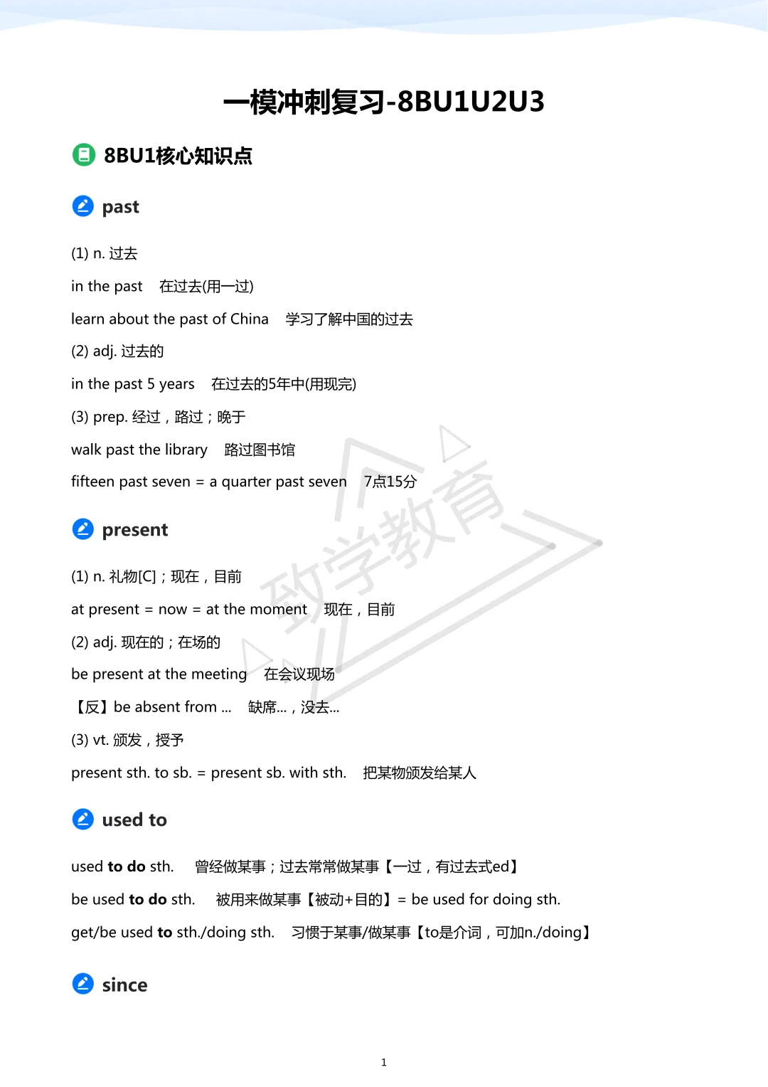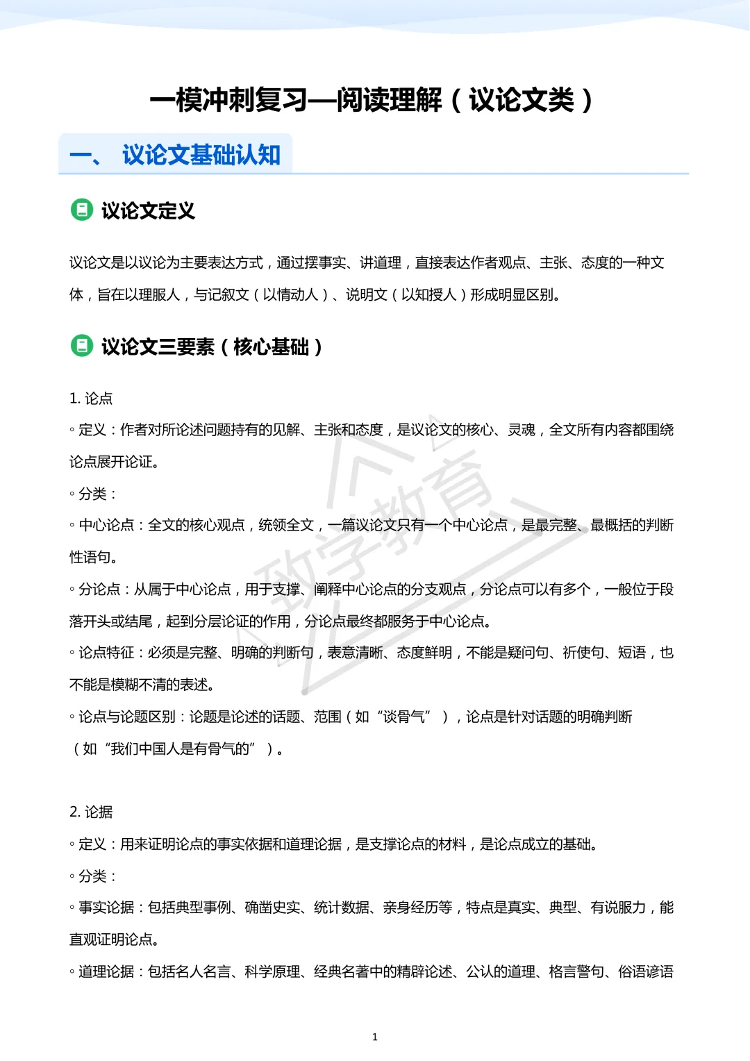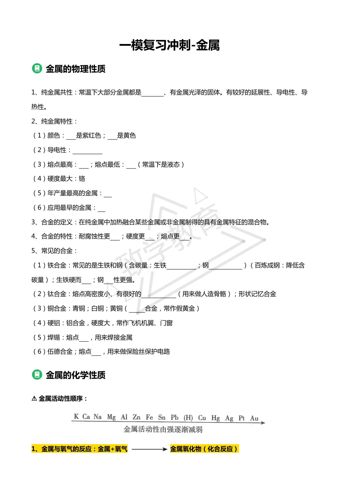 内容包含了知识点复习+往期一模卷针对性的真题好题