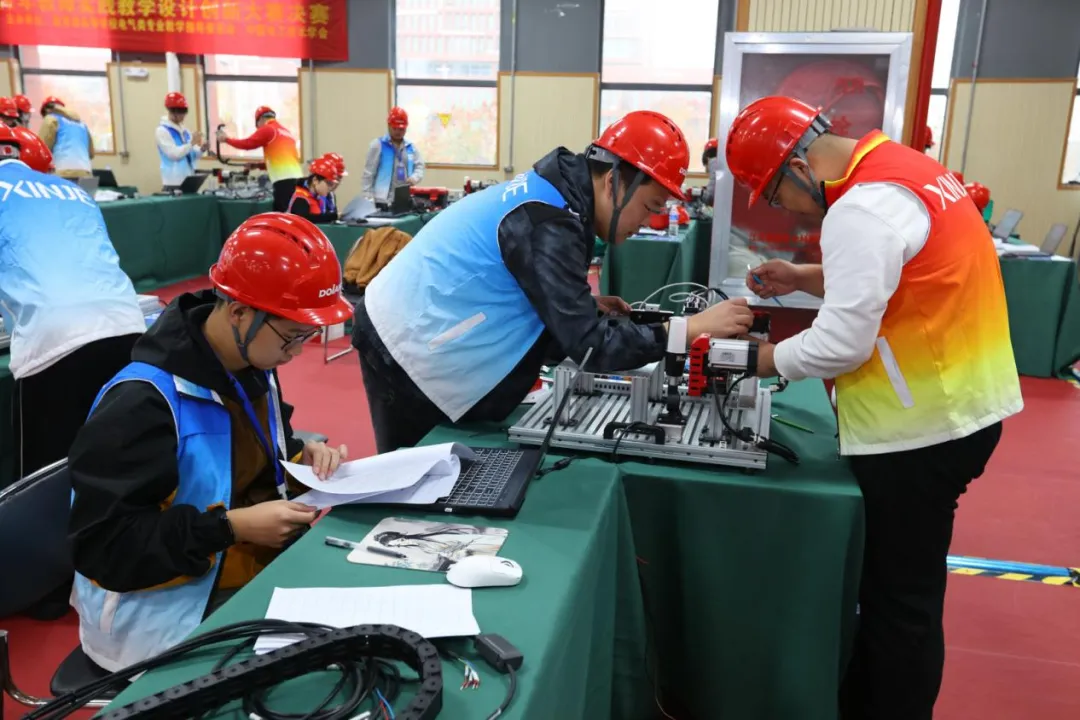 ○备战第三届全国高校电气类专业青年教师实践教学设计创新大赛时,他和队友迎来重重挑战:仅有半个月备赛时间,且只能利用夜晚钻研,面对从未接触的信捷国产PLC编程,只有一堆散落的设备零件。没有现成设备,他们就改造学校老旧器械;队友负责接线改造,他便一头扎进程序编写的“深水区”。
