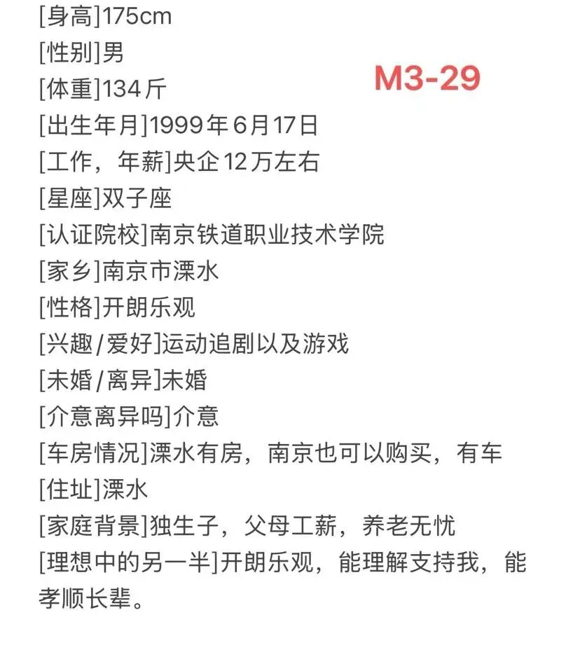 >南京脱单|99年,男,身高175,央企工作,性格开朗乐观,南京本地人,随时买房