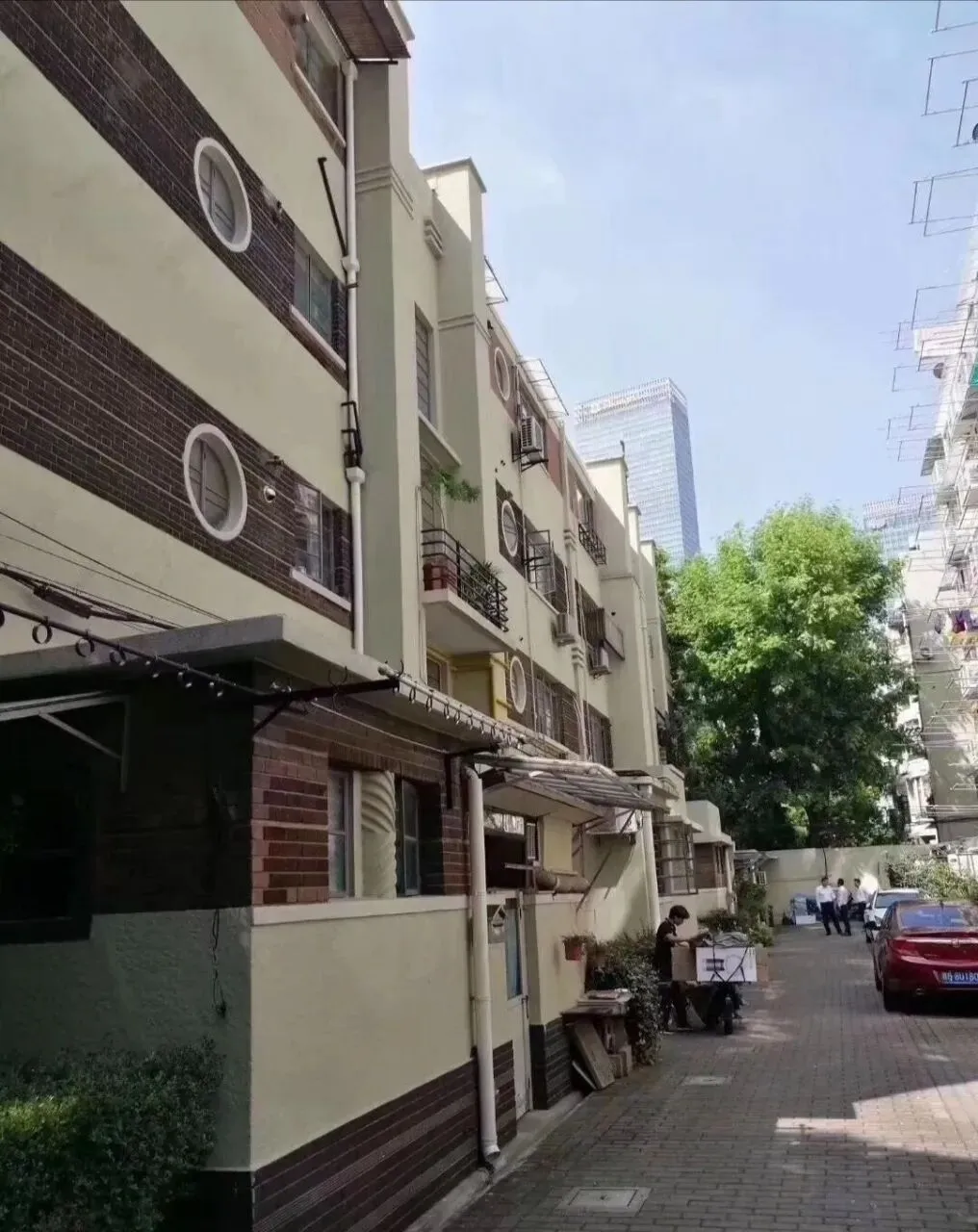 《老公寓》英式古典摩登风建筑:南京西路1173弄【花园公寓】,层高4.5米+面宽12米+固定车位,一梯两户,三开间朝南,看中庭大花园