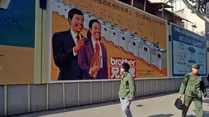 大幅的广告牌遮了半面墙,红底黄字,一个男的一个女的笑得露出白牙,楼上一溜“兄弟牌”,谁能想到这样精致的招贴画,那个时候已经算潮流货了,街头人一抬头,广告里的人也和你对视。
