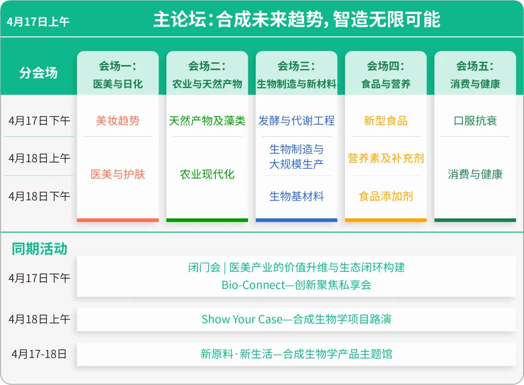 2026第四届合成生物学产业博览会(SBC2026)将于4月17-18日在南京扬子江国际会议中心召开!本届博览以“合成生物未来趋势,智造无限可能”为主题,围绕医美日化、农业与天然产物、生物制造与新材料、食品与营养、消费与健康等内容设置5大会场、13个前沿专题展开深度探讨。