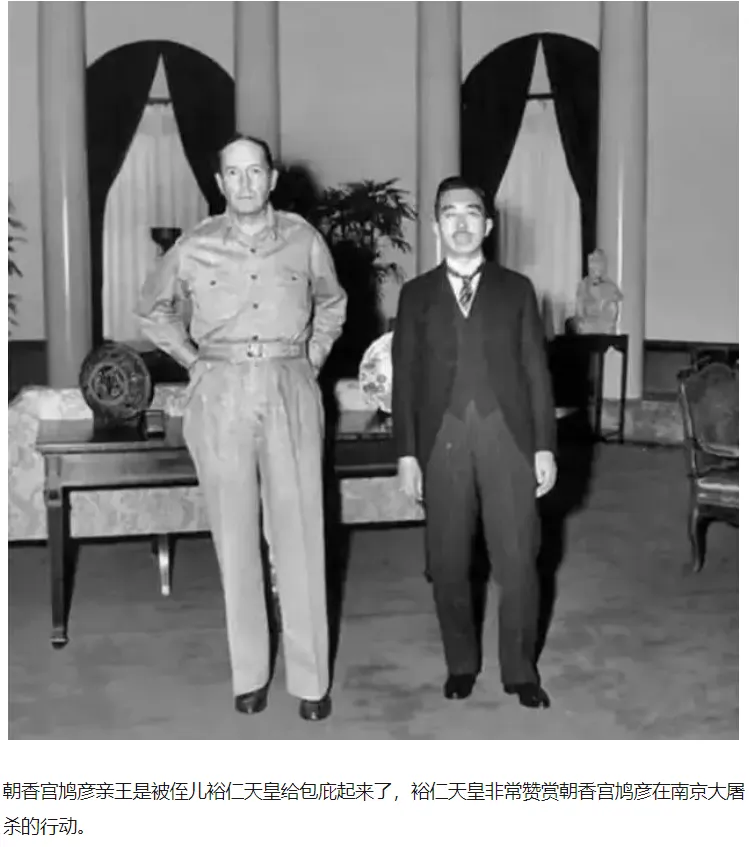 其实为了让皇室逃避罪责,早在1940年,具有先见之明的天皇裕仁就将许多皇族成员提前调离了军职。美军在日本登陆后,盟军最高司令麦克阿瑟考虑到美国的利益和日本的局势,再加上当时国际上政治矛盾的转变,和天皇裕仁进行了和谈。麦克阿瑟认为要稳定占领日本,必须利用日本人对天皇的尊崇之心,使天皇仍为日本人的心理支柱,天皇不倒,民众就不会乱,因此决定不追究天皇的战争责任,盟军也就不把皇族作为战犯嫌疑人逮捕起诉了,南京大屠杀的元凶之一朝香宫鸠彦王也靠着皇族的身份,逃脱了法律的制裁。