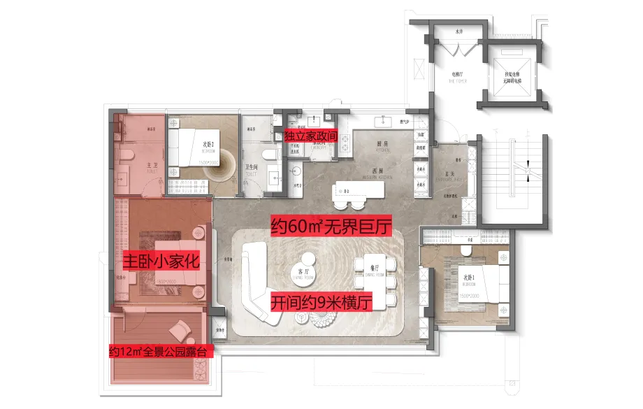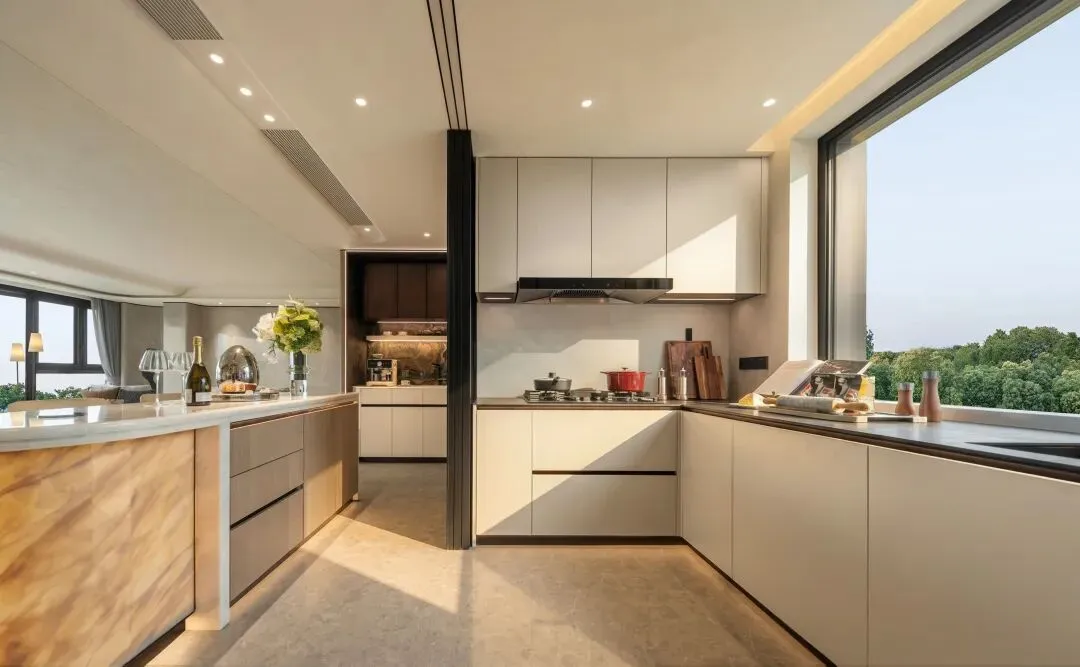 客厅开间约9米,搭配约3.15米墅级层高,气场无与伦比。LDKB一体化设计(三房交付),呈现约60㎡的“社交岛屿”,家人的三餐四季、孩子的嬉戏玩耍、友邻的欢聚畅谈,种种美好场景自在生长。