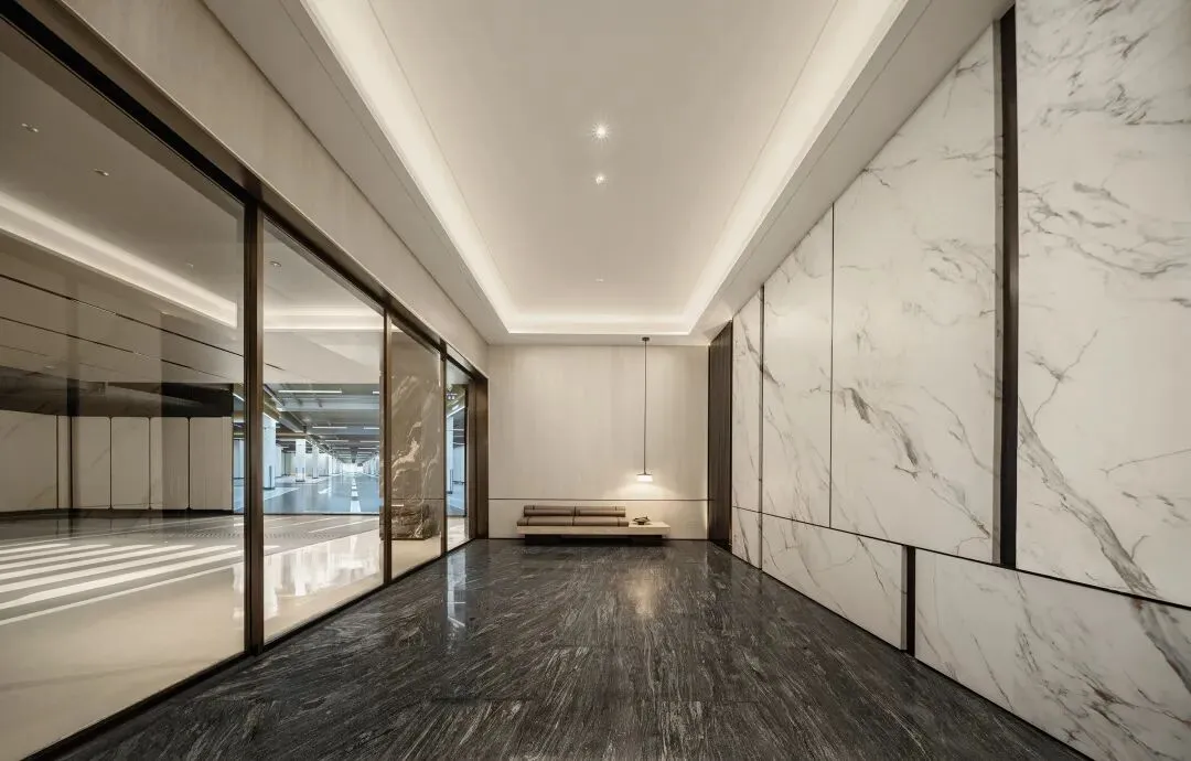 归家的仪式感,从地上延伸至地下。首层入户大堂挑高超6米,地下约4米挑高的精装大堂同样不逊色,岩板景墙诠释精奢格调,恰是圈层买家心照不宣的身份共鸣。