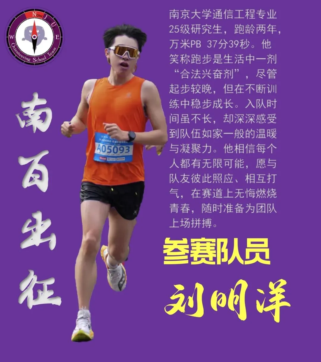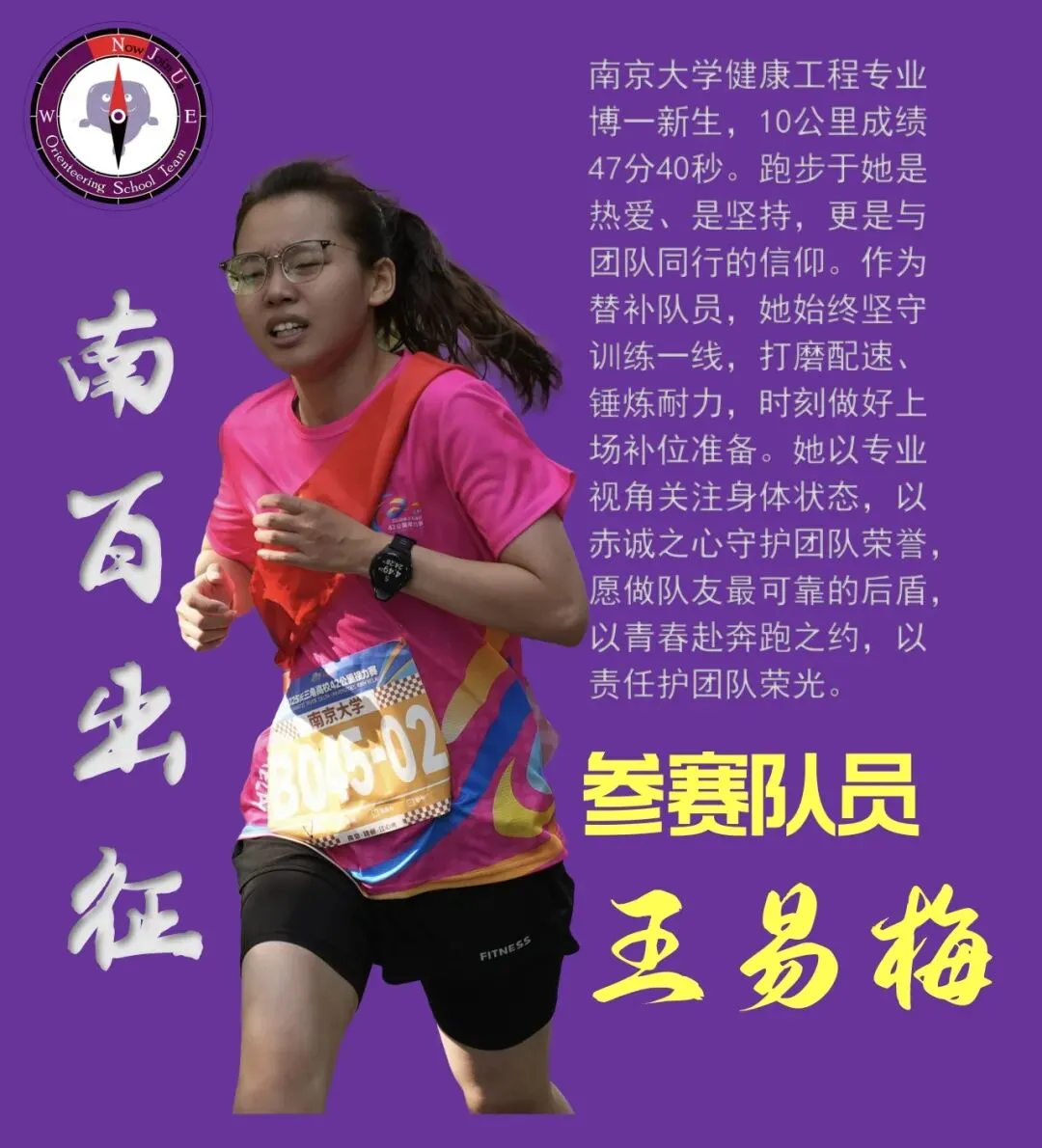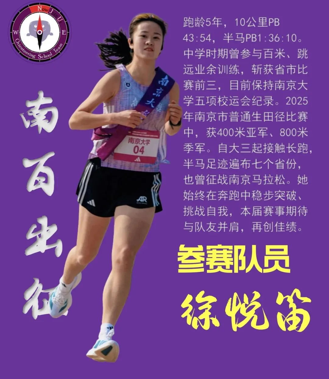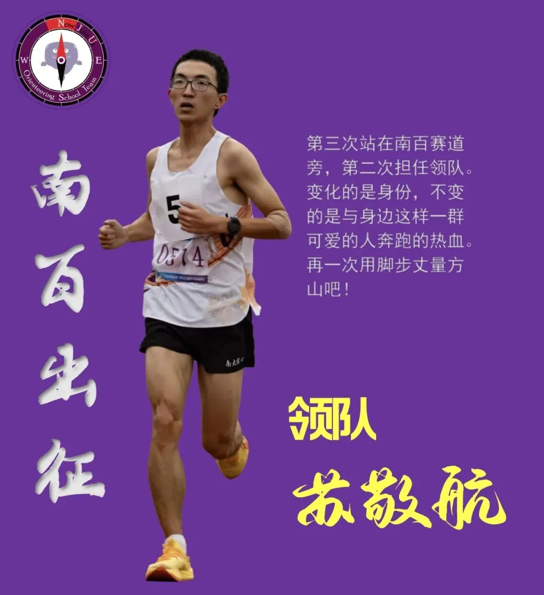 南京大学定向越野暨马拉松队,简称南大定向队、NJU定向队、NJU马拉松队,隶属南京大学体育部,是以定向越野和马拉松为主要项目的普通生运动队。队伍致力于科普和推广定向越野与马拉松项目,提供专业的训练建议,以提升队员综合素质为宗旨,积极组织参与各类比赛。本次是南大定向队第四年参加金斯瑞南京·高校百公里接力赛,我们也将再一次厉兵秣马,向着全新的荣誉,发起冲击!