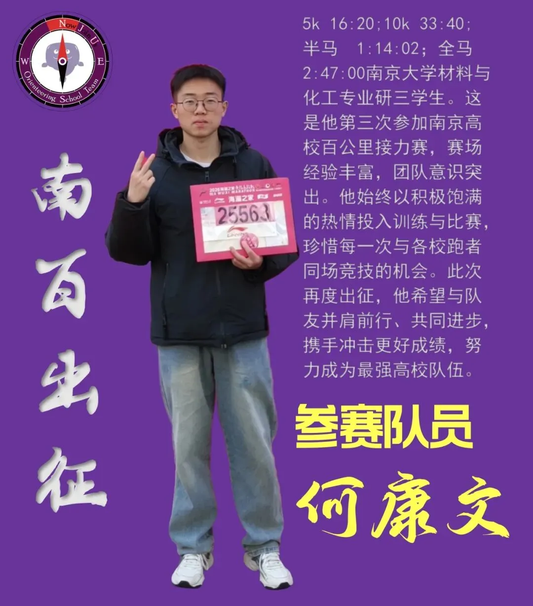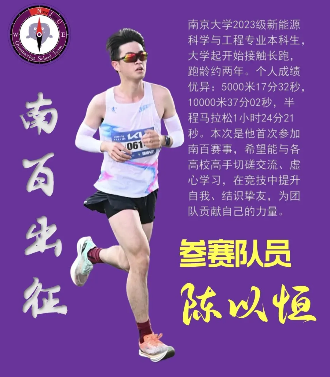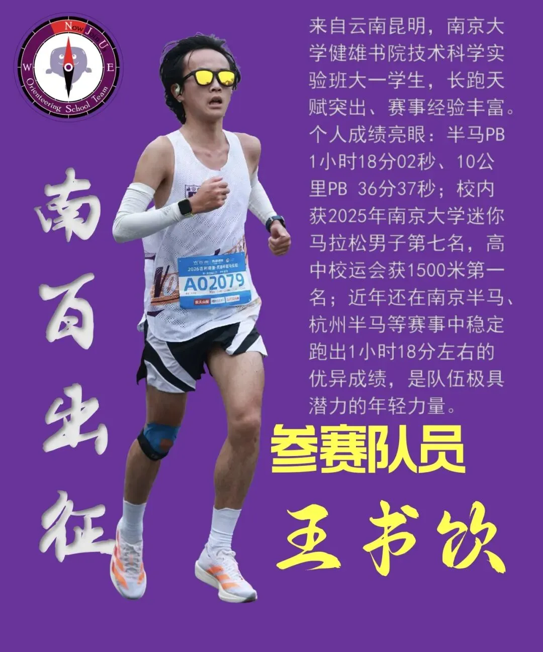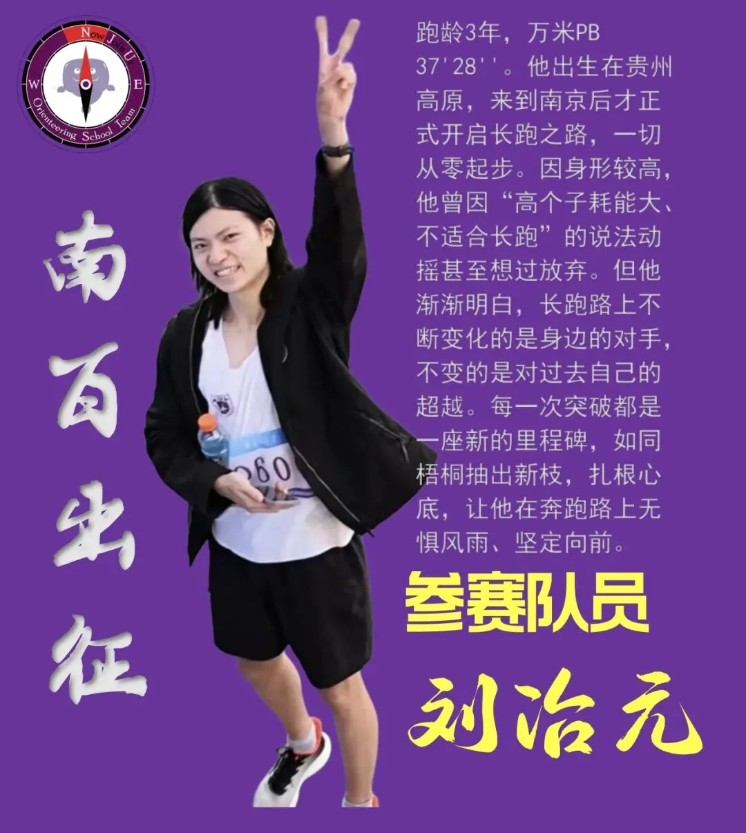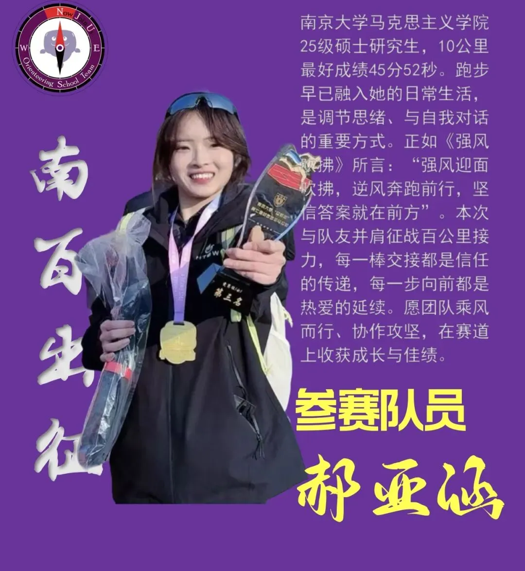 南京大学定向越野暨马拉松队,简称南大定向队、NJU定向队、NJU马拉松队,隶属南京大学体育部,是以定向越野和马拉松为主要项目的普通生运动队。队伍致力于科普和推广定向越野与马拉松项目,提供专业的训练建议,以提升队员综合素质为宗旨,积极组织参与各类比赛。本次是南大定向队第四年参加金斯瑞南京·高校百公里接力赛,我们也将再一次厉兵秣马,向着全新的荣誉,发起冲击!