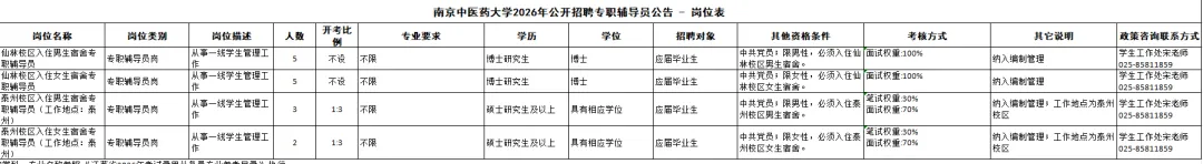 南京中医药大学2026年公开招聘专职辅导员公告