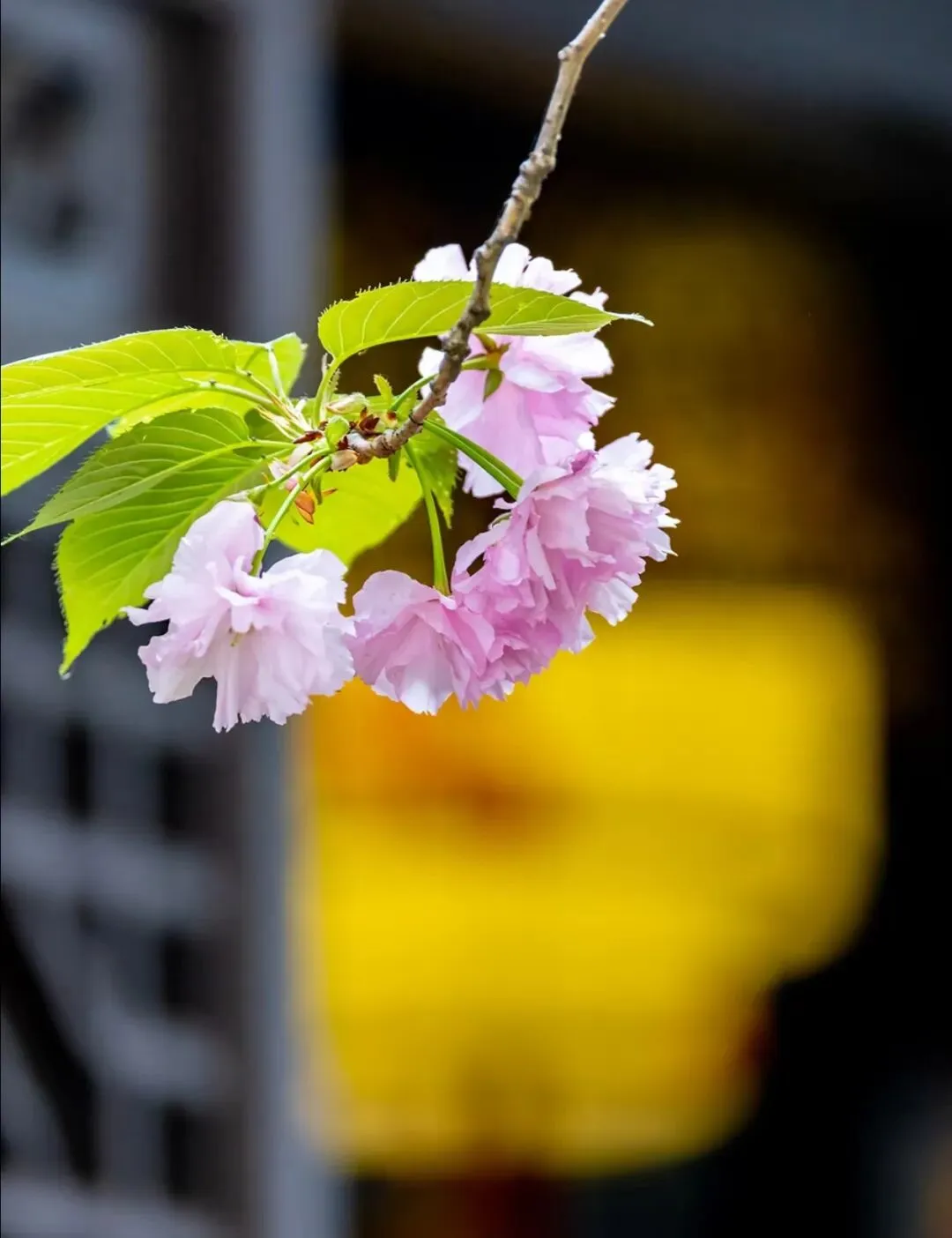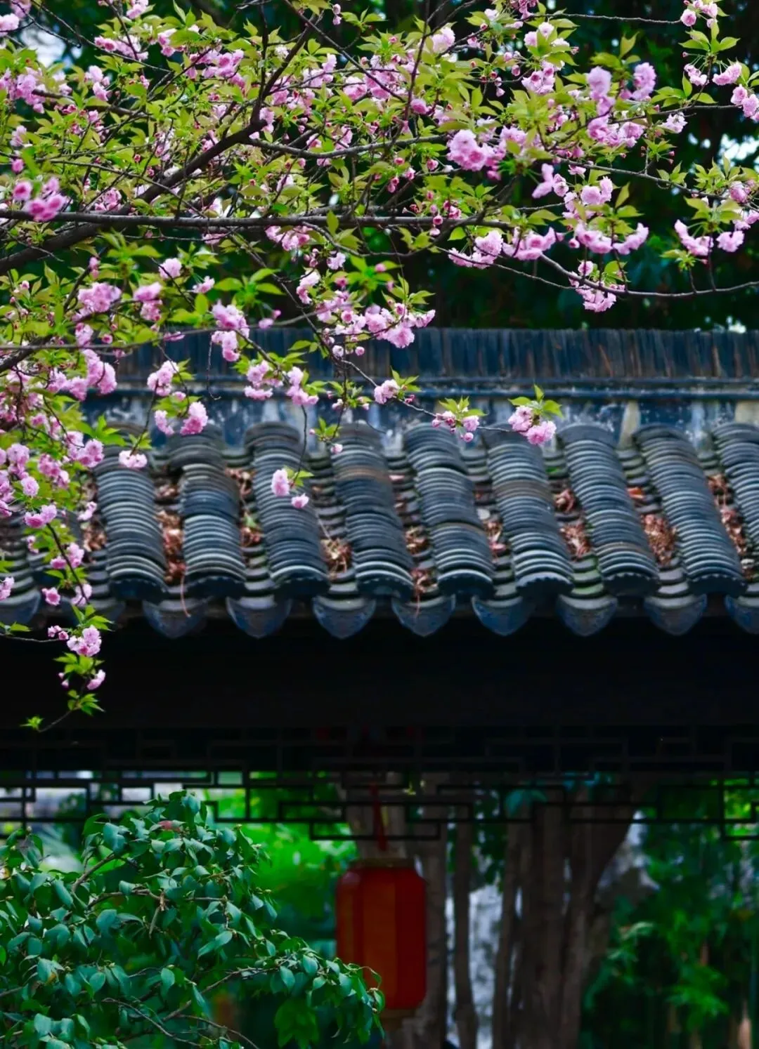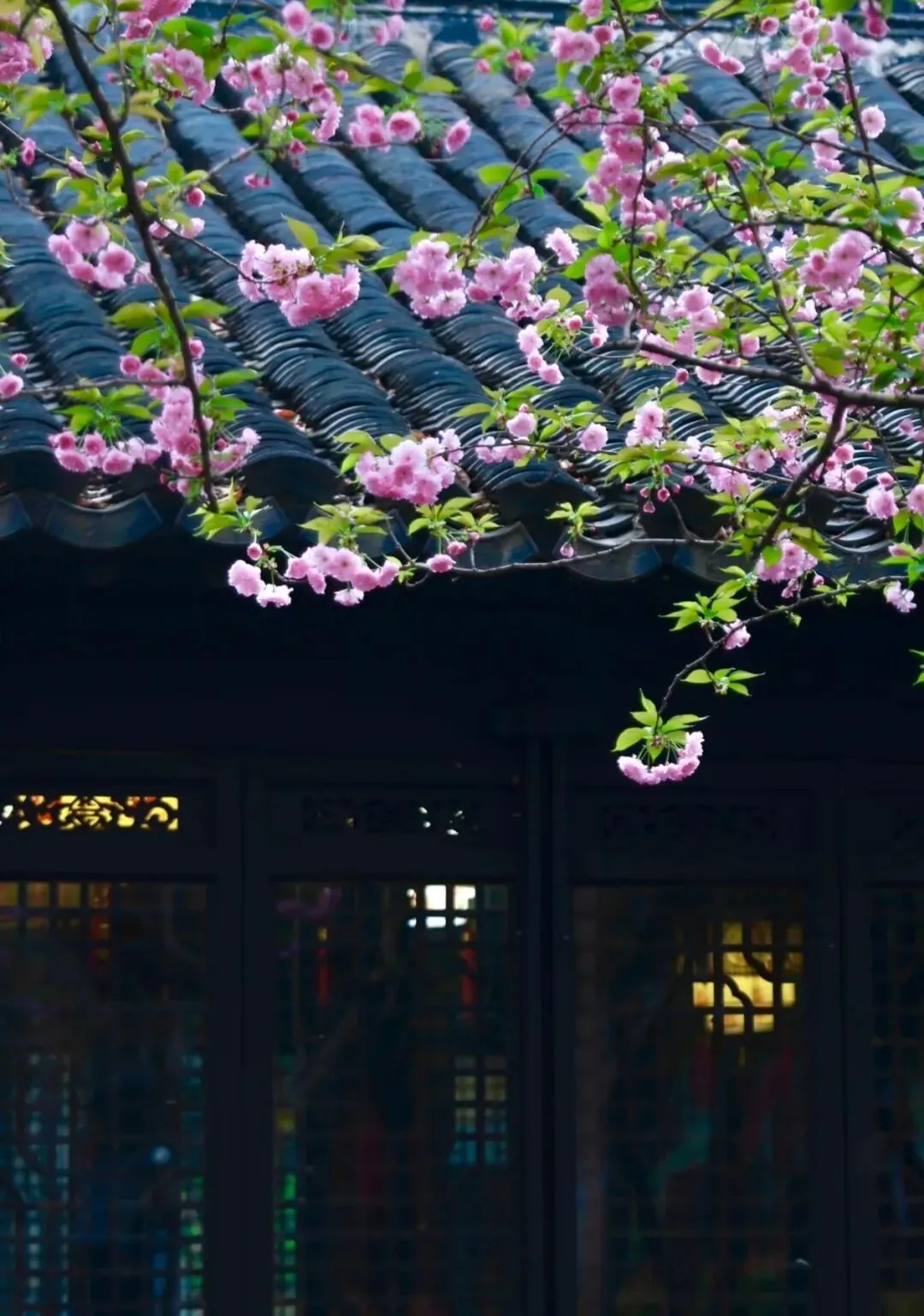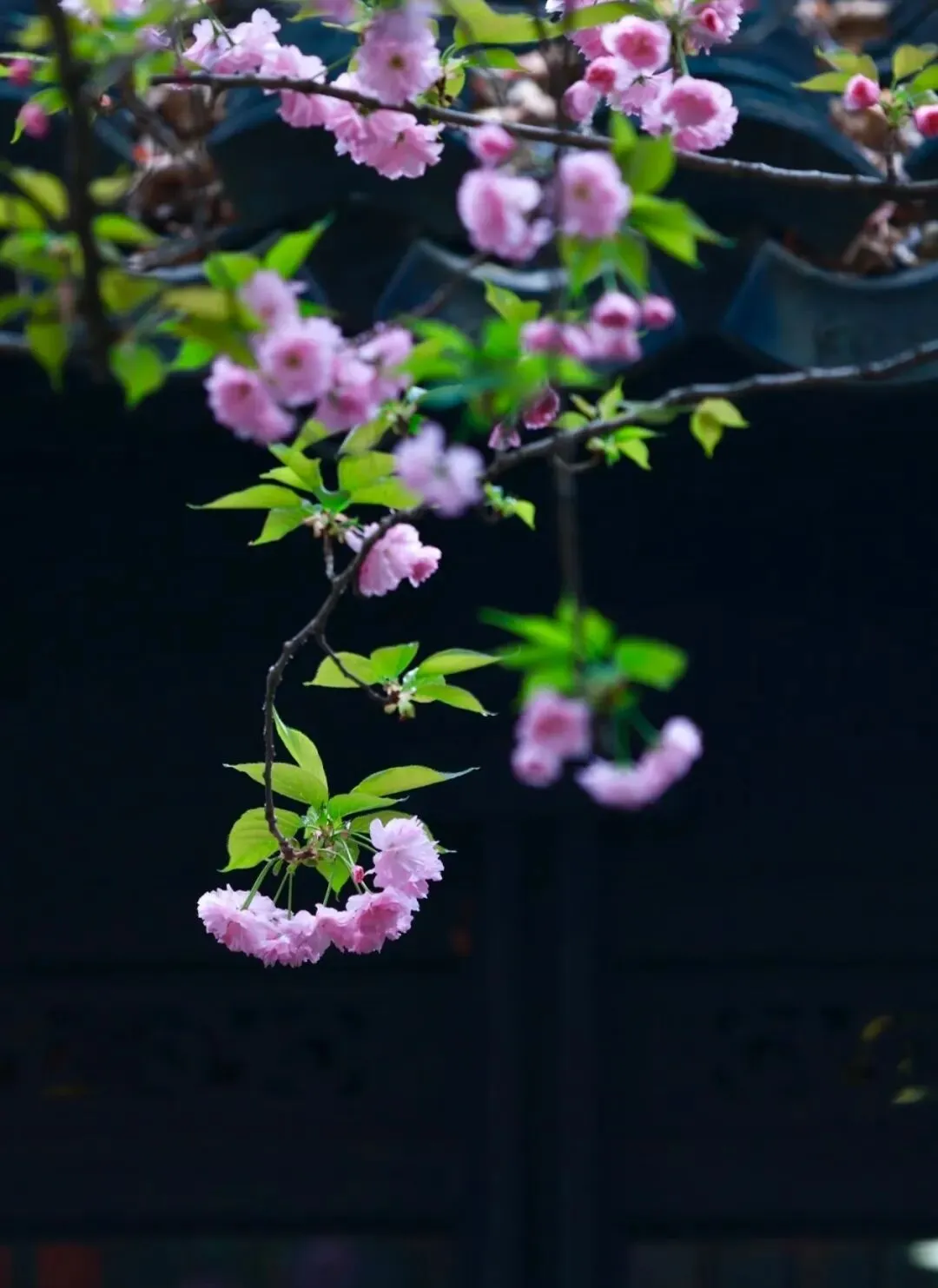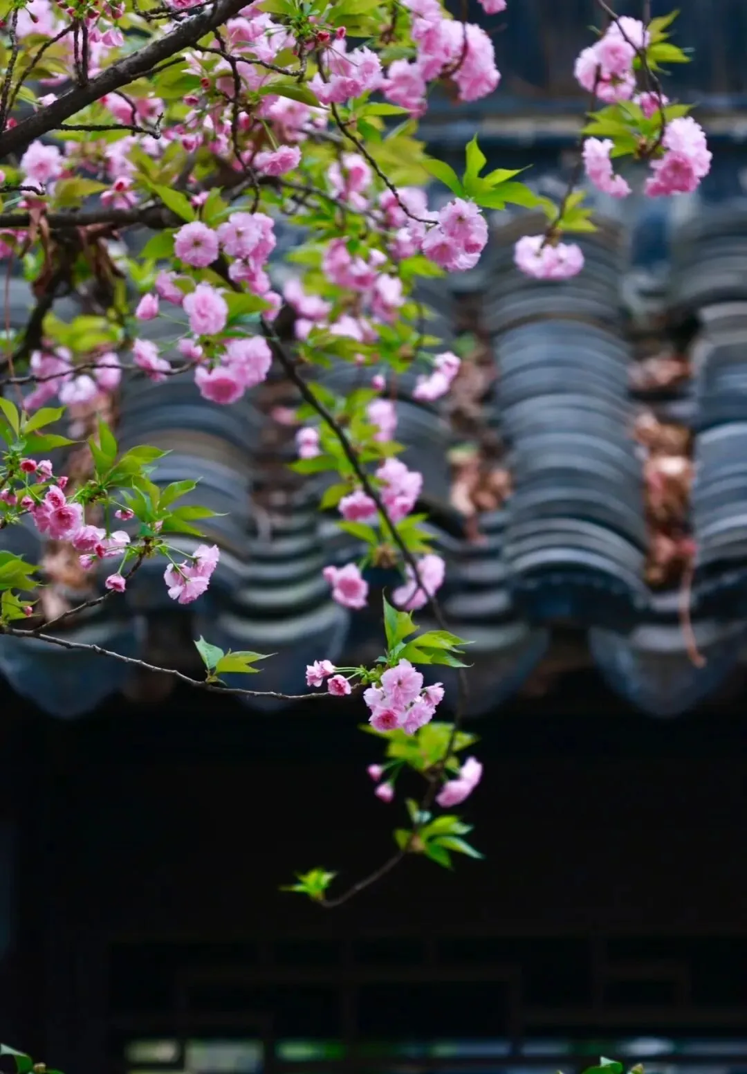 - 倚着屋檐开,樱花便有了中式建筑的风骨,柔美中带着端庄 ;