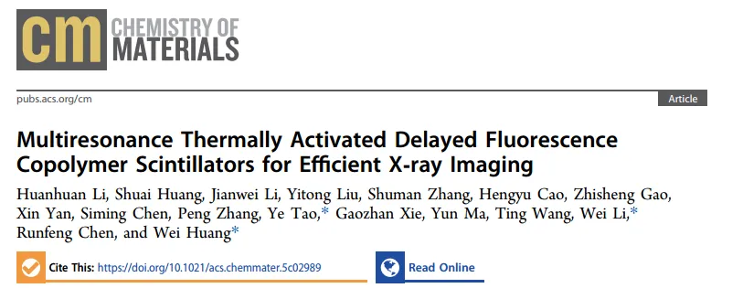 南京邮电大学,Chemistry of Materials,用于高效X射线成像的多共振热活化延迟荧光共聚物闪烁体