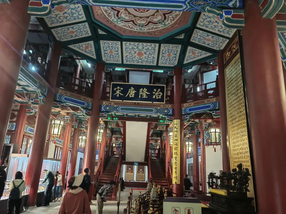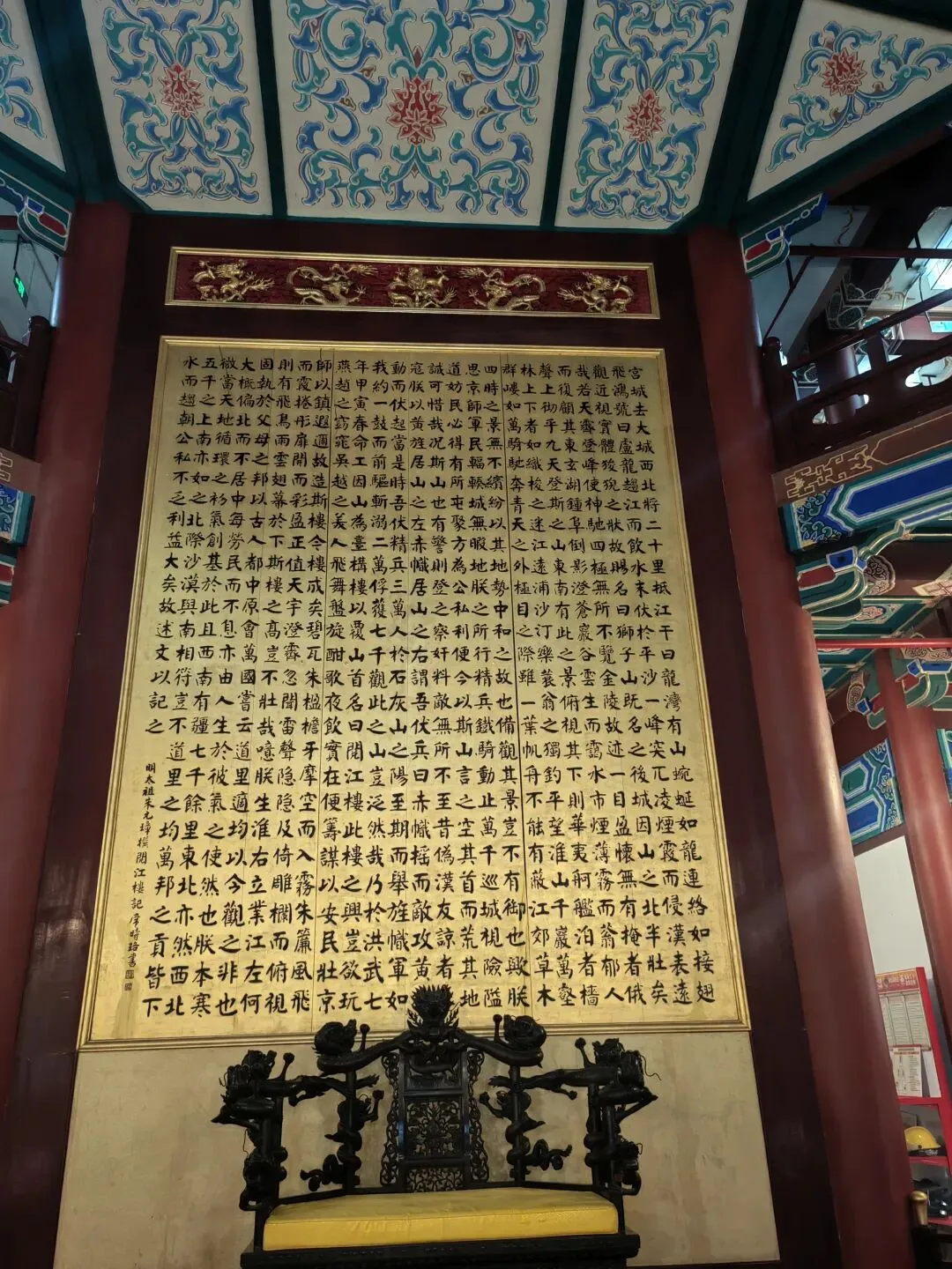 登楼观览,阅长江之景,故名“阅江楼”。乘电梯直达顶层,放眼望去,万里长江穿石头城而过,南京长江大桥横跨两岸,南京城的大江南北尽收眼底。腿上的酸痛,在这壮阔景象前似乎也消散了不少。