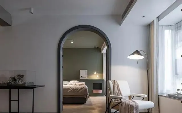 2 主卧其实没太大,但通过家具和颜色分区,视觉上显得大不少。床边放了超大落地窗,白天直接一大片阳光泼进来,站在窗前晒太阳,感觉像住进了高档度假酒店。衣柜做成嵌入式的,零碎什么都收进去,外面一块大镜面,起床整理下自己那种自信,感觉特爽。旁边安排了个小书桌,加个绿植,早晨坐那刷会手机,或者沏茶喝喝,真有点仪式感。