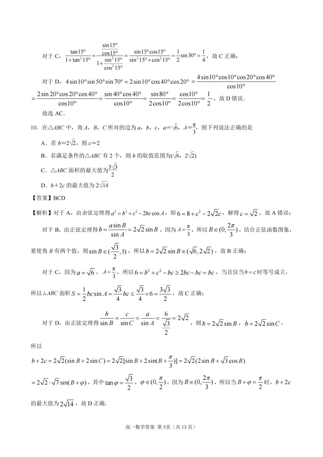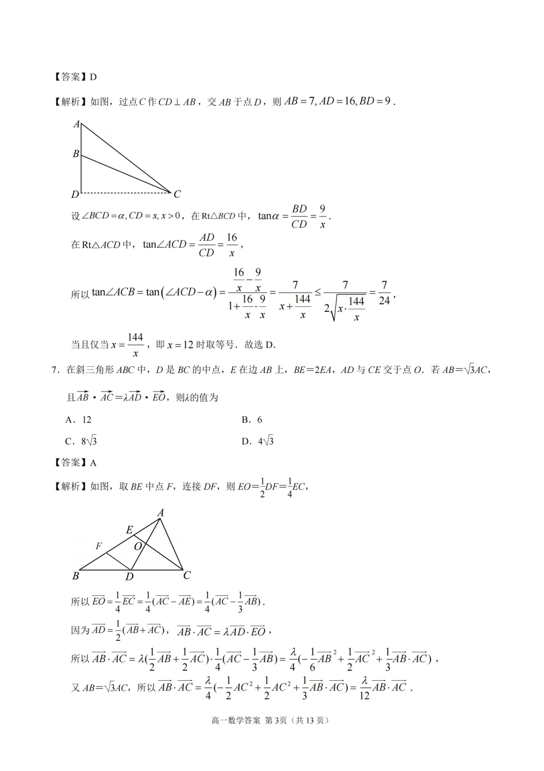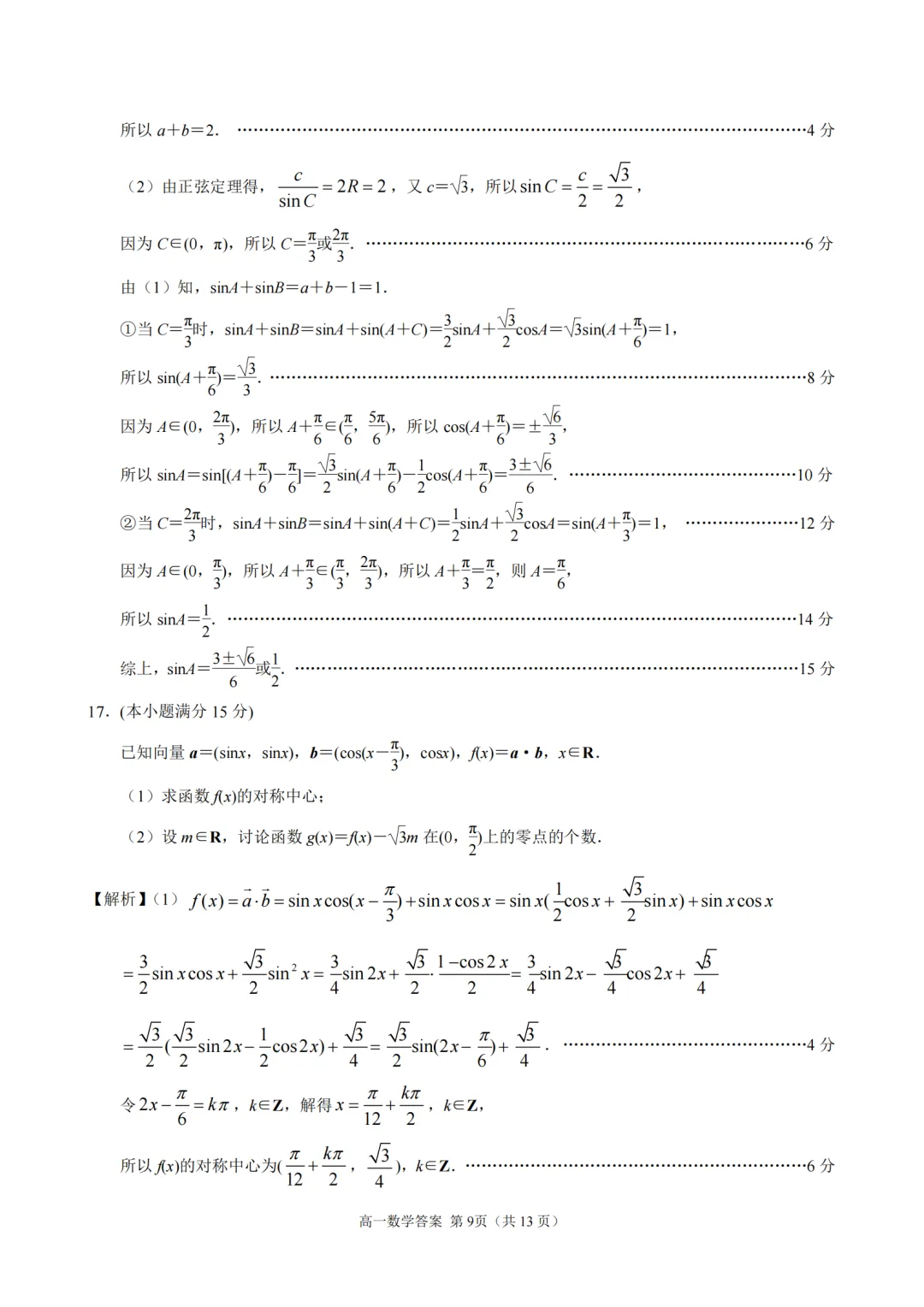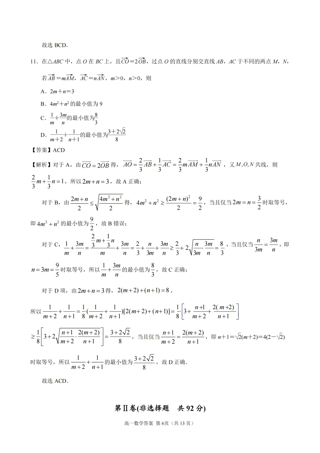 2025-2026【南京一中】高一下4月考数学及评分标准