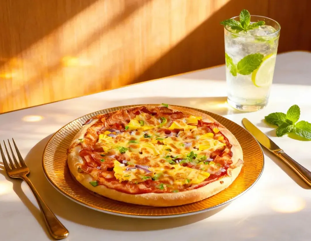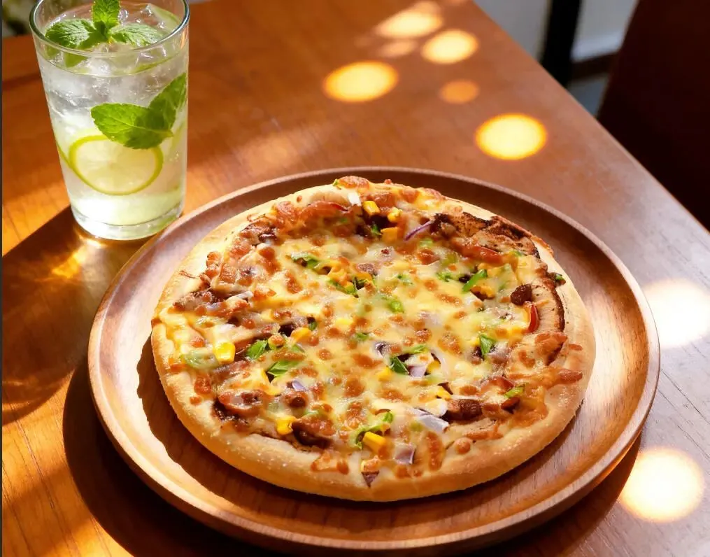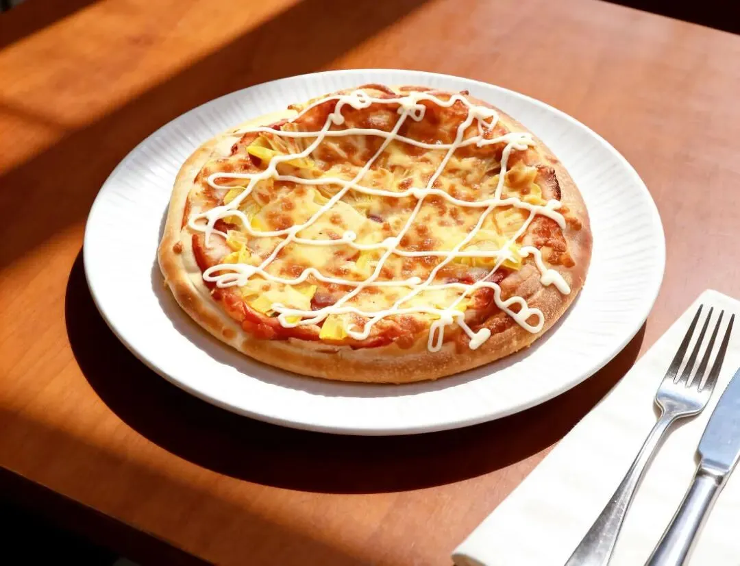 料超足,火腿、蘑菇、青椒、玉米粒铺得满满当当。