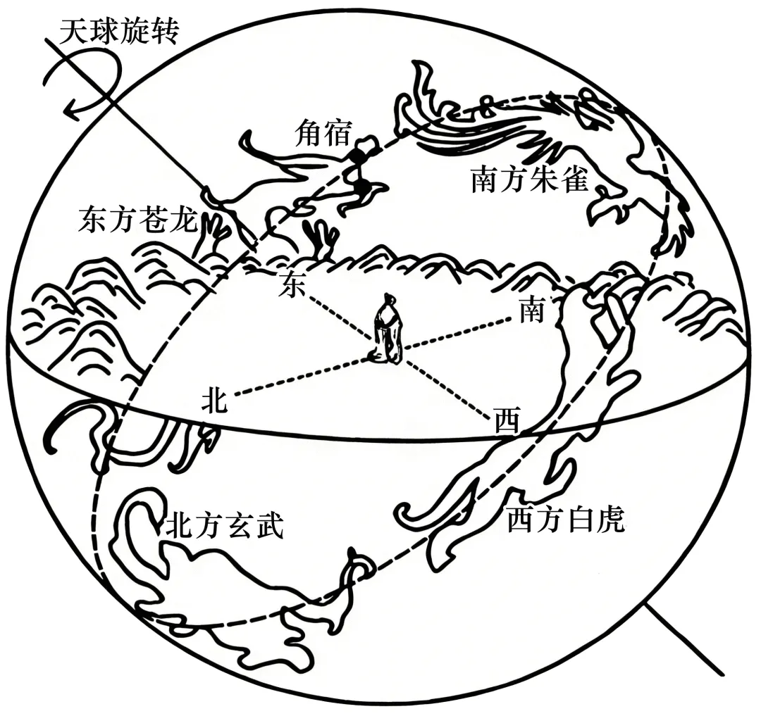 古人将黄道附近星象划分为二十八宿,分属苍龙、朱雀、白虎、玄武等“四象”,角宿为苍龙首宿(下图)。每年农历二月初二,日落后一段时间,当角宿从地平线升起时,即为“龙抬头”。2026年“龙抬头”为公历3月20日。据此完成下面小题。