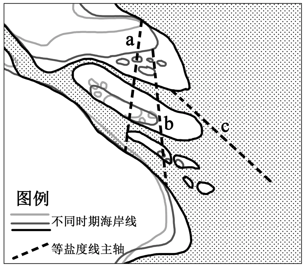 7.据图判断,该地等盐度线主轴的演变顺序是()