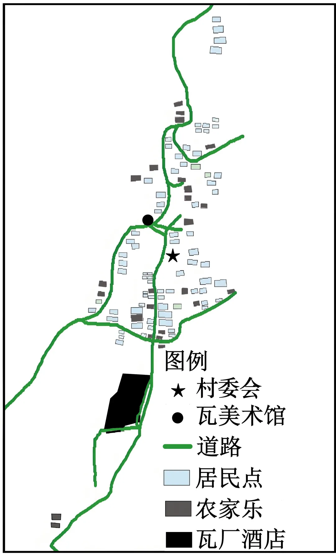 北京市北沟村四面环山,南邻京承高速,北邻长城,板栗种植曾是当地村民主要收入来源。2012年该村凭借良好的乡村建设,被评为“中国最有魅力休闲乡村”之一。下图为北沟村平面简图。据此完成下面小题。