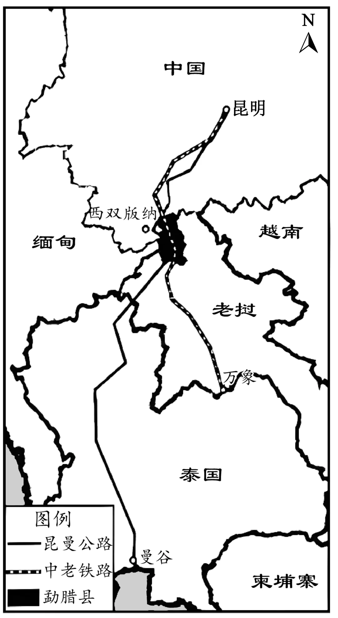 材料二下图为“云南省勐腊县区位示意图”。