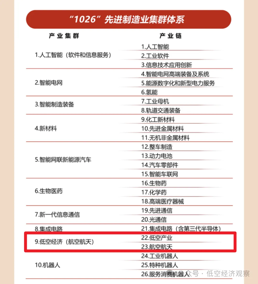 低空经济(航空航天)领域,《纲要》提出,积极打造全国低空经济创新策源地、产业高地和服务枢纽。加快建设高淳定埠、栖霞龙潭、浦口老山等通用机场和重点区域低空起降点。拓展低空经济在城市治理和公共服务领域的应用,探索打造长江低空智联网等一批示范场景。服务融入长三角大飞机产业集群建设,加快打造机载系统核心供应、结构大部段及核心零部件制造集聚区。大力发展火箭总装、大飞机配套、航空材料等细分领域,抢占商业航天等新赛道。到“十五五”末,全市低空经济(航空航天)产业规模超过1000亿元。推进卫星时空信息服务设施布局,完善全市低空飞行服务平台、低空飞行地面设施与低空数字智联网。加强低空基础设施的规划建设协同、空域资源互联、低空航线互通。「低空经济观察」将《纲要》部分内容分享如下。