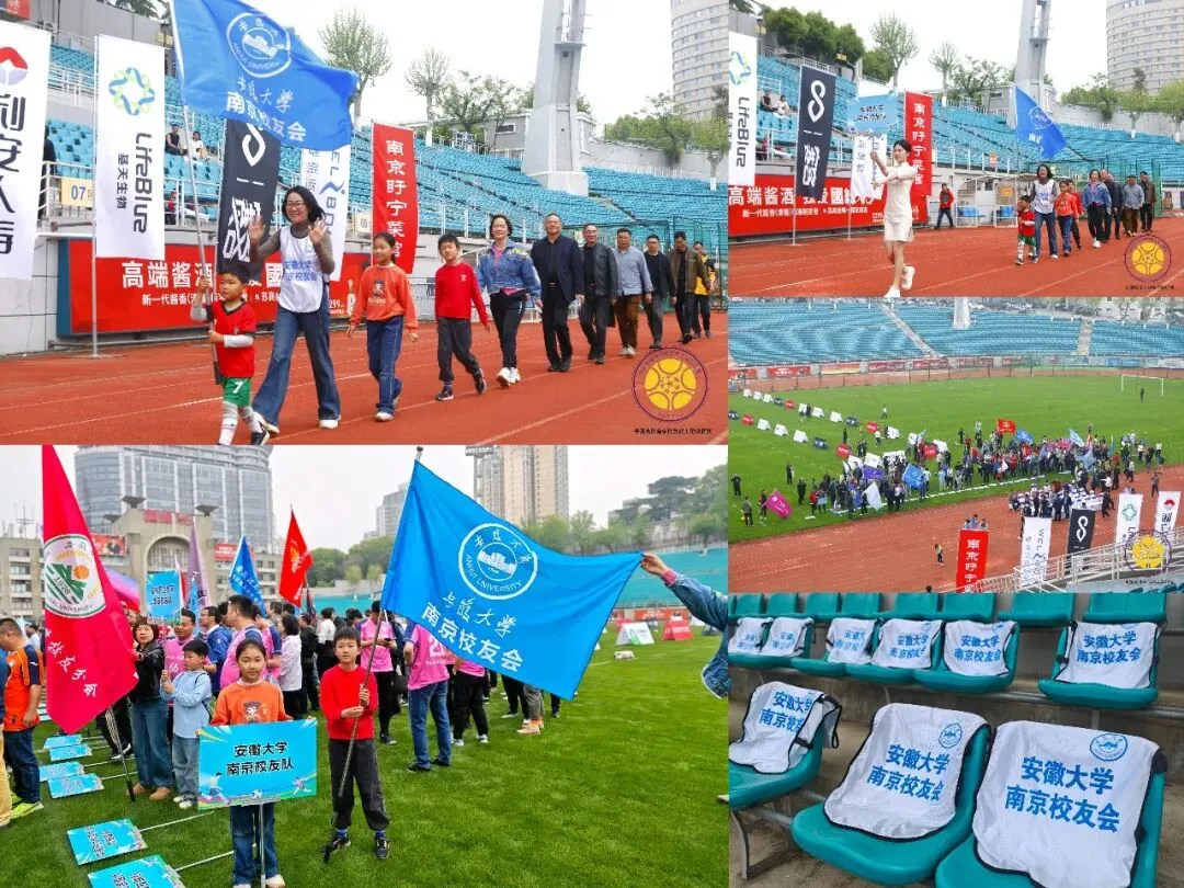 安徽大学南京校友会刘虎副会长、李鑫秘书长出席了本次开幕式。蓝白相间的安徽大学南京校友会旗帜迎风招展,旗手迈步在前,队员与家属们并肩走在红色跑道上,孩童们活泼的身影更添活力,一行人朝着主席台方向从容前行。步伐间,安大“至诚至坚,博学笃行”的校训精神化作具象的风采,校友们的团结与热情在赛场中绽放,家属的陪伴则让这份校友情多了份温暖的烟火气,成为赛场上一道兼具情怀与温情的风景线。