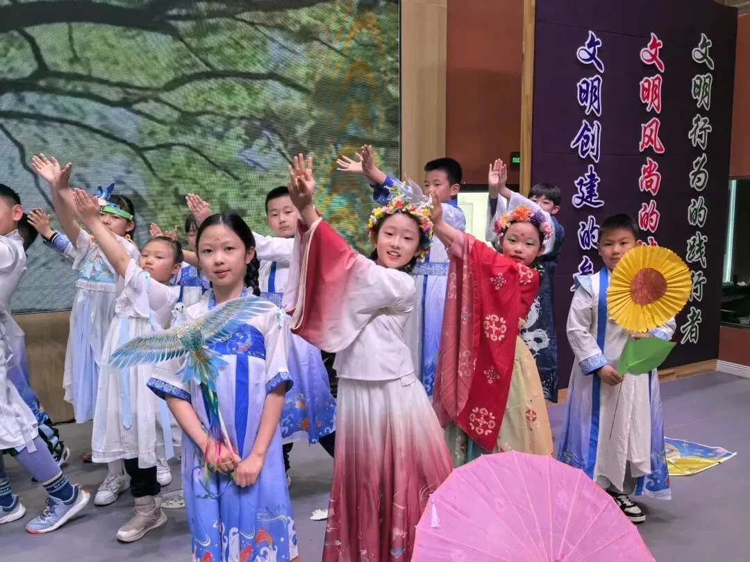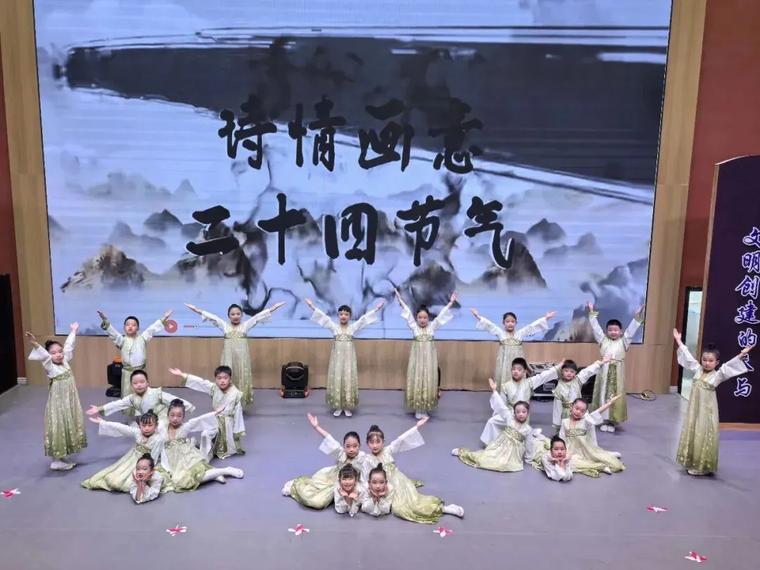 以书为媒,以舞为语,以诗为韵。在节目表演环节,四年三班的同学们带来经典节目《春分诗韵》。他们用悠扬婉转的吟诵、柔美灵动的舞姿,将春分时节的温润诗意与书卷气息完美融合。
