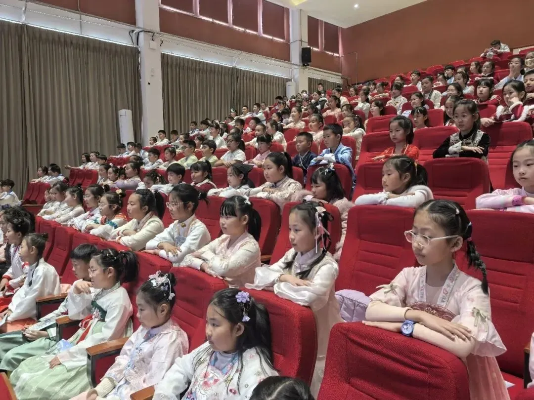 二年十九班的同学们带来精彩表演《节气童韵书香四季》。孩子们用活泼生动的形式,串联起四季节气的特色与民俗,朝气蓬勃、神采飞扬,用灵动的表演传递书香力量,赢得了全场阵阵热烈掌声。